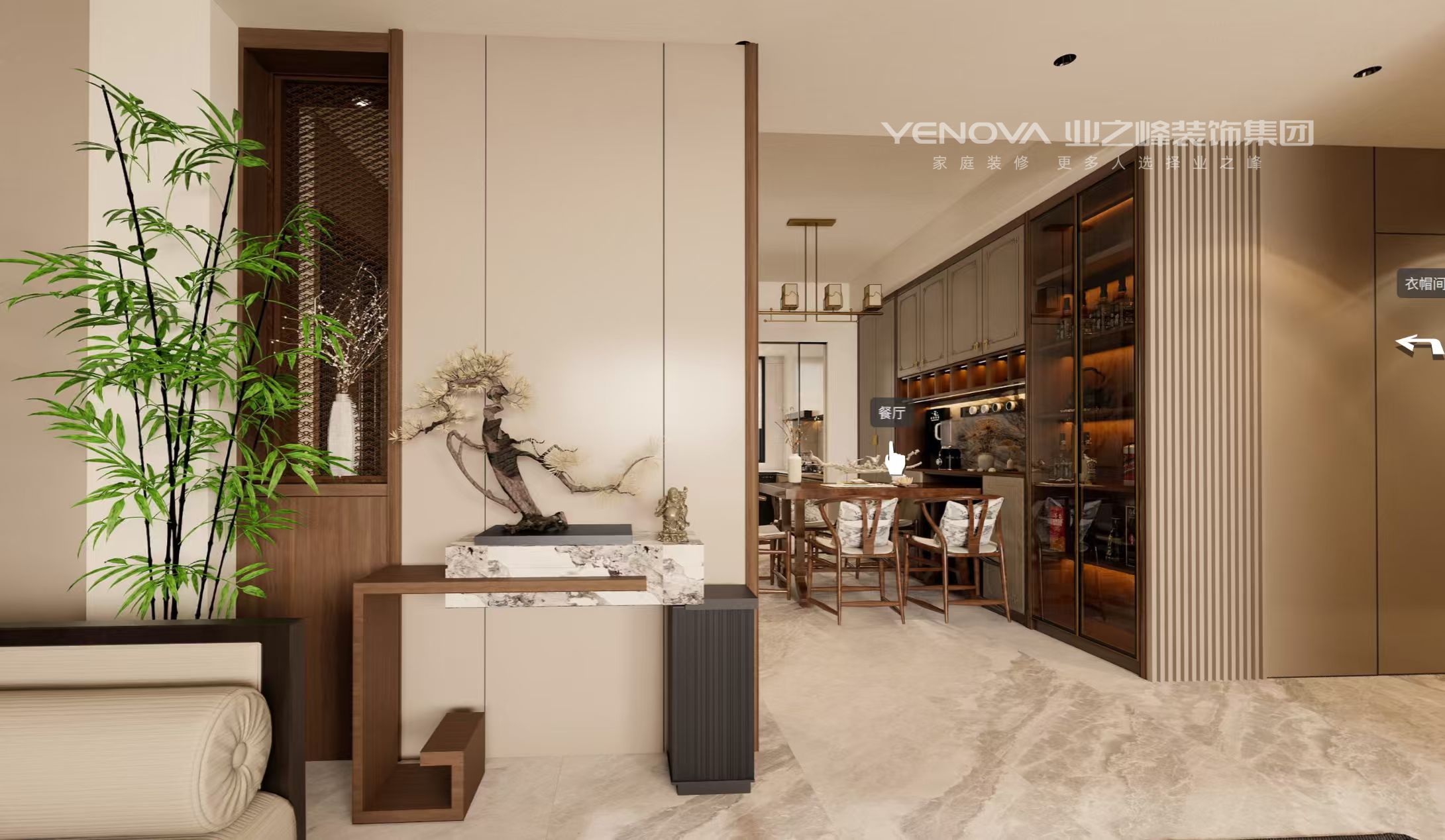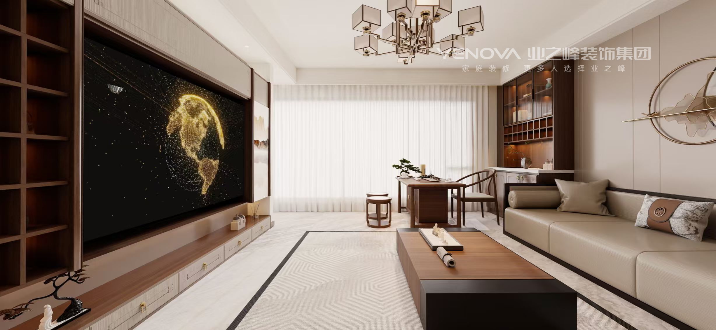 海鸿喜悦府 140㎡新中式,以实木、传统元素为核心,融合现代布局与雅致细节,打造典雅大气的新中式居所。