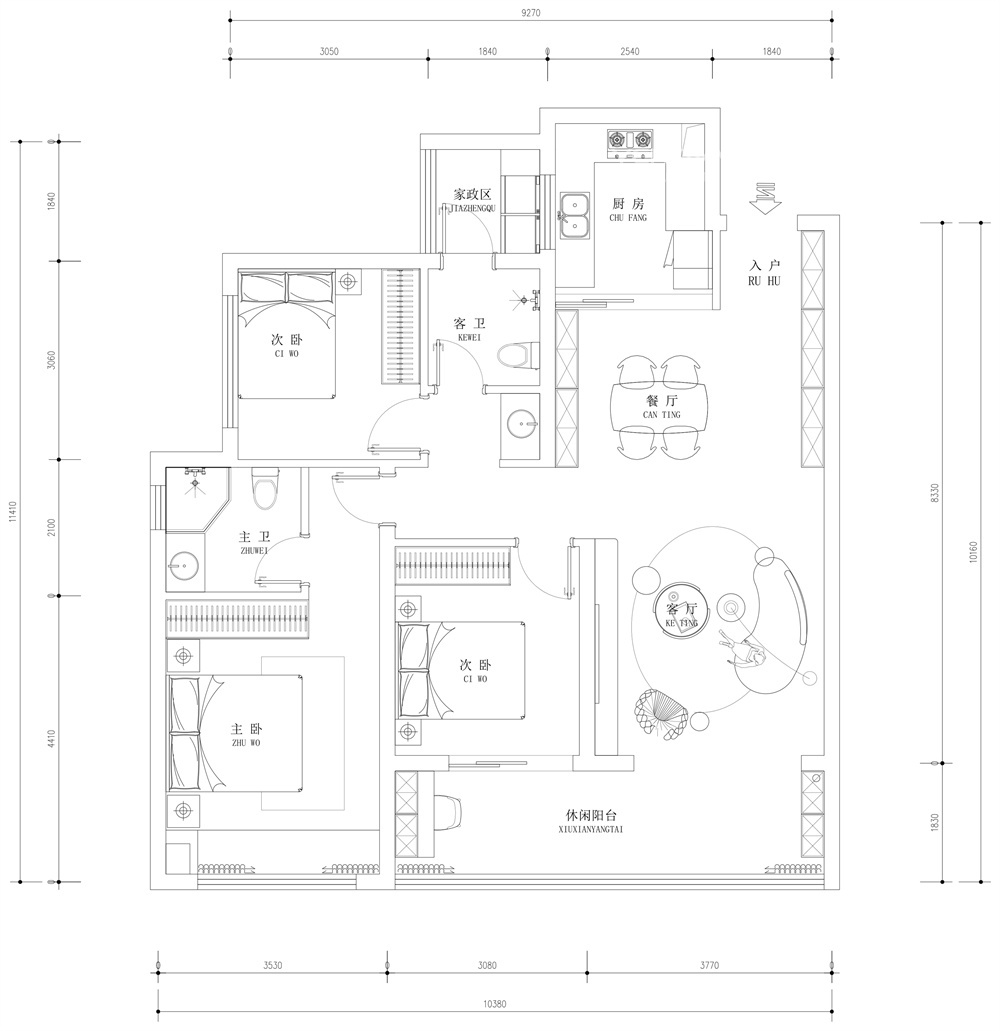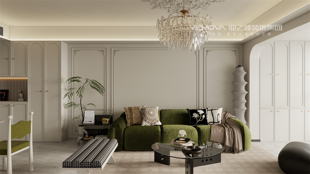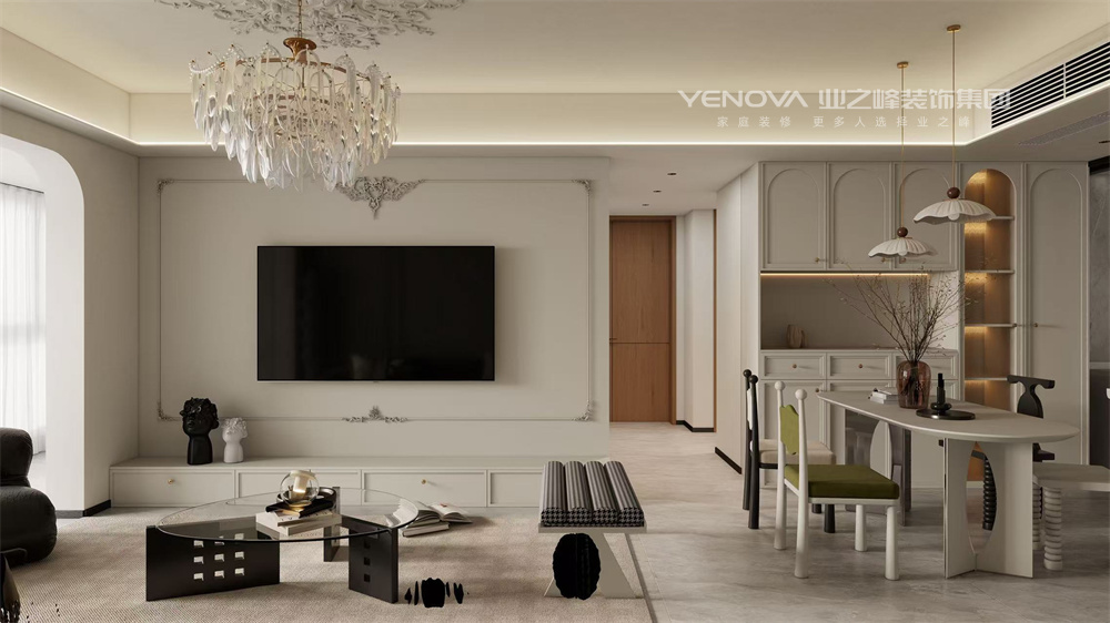 本设计从年轻小两口的生活习惯与审美偏好出发,以法式轻奢的优雅为形,以“全域化、定制化”收纳为核,打造出一个既浪漫精致,又实用便捷的理想居所,让每一处设计都服务于“品质生活”的体验,诠释当代年轻家庭的居住美学。