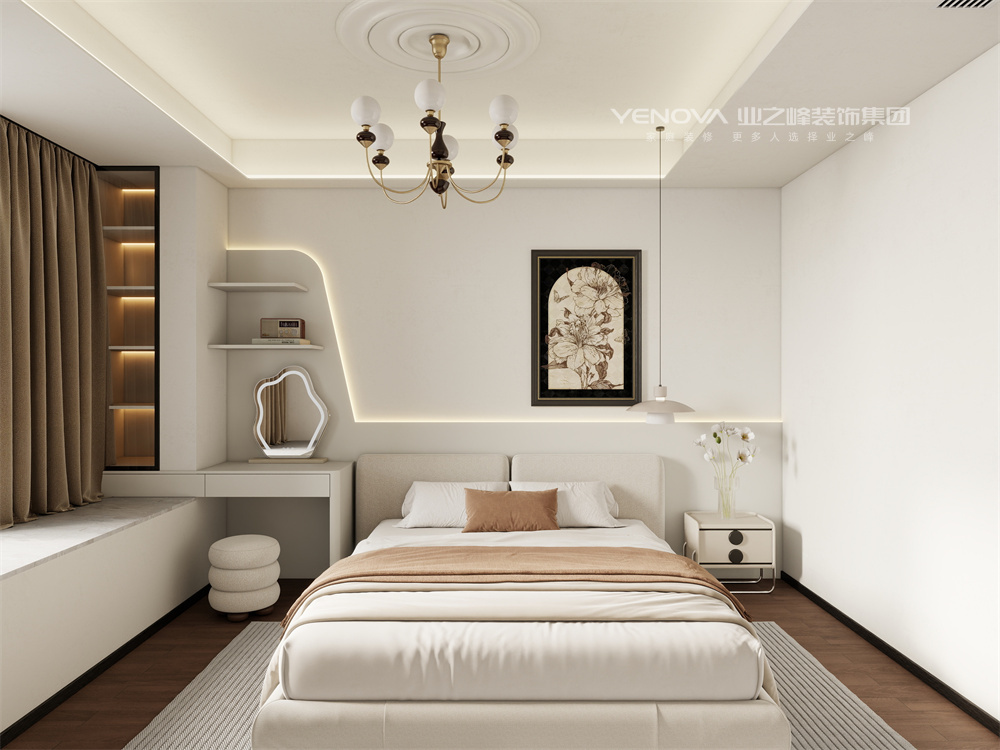 定制梳妆台与壁龛:将梳妆台与墙面收纳壁龛结合,开放格用于放置书籍、饰品,封闭柜体收纳美妆用品,兼顾梳妆功能与收纳需求,让卧室空间利用更高效。