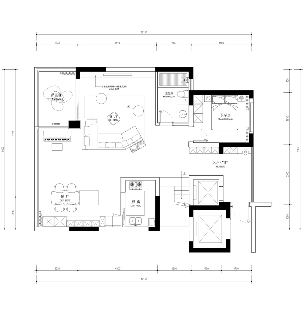 户主为中年夫妻,有一个孩子,是他们的第三套房子,属于改善型住房,希望设计出来新颖且不易过时,整体大气显得有质感,平时会接待一些亲朋好友。主卧要大套房,独立衣帽间,有两个孩子,要考虑平时学习环境,平时要练钢琴。