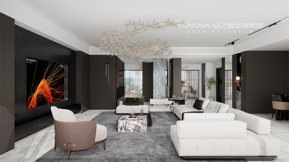 设计理念:通过纯粹的黑、白、灰三色,构建一个宁静、理性、且充满张力的居住环境。设计旨在为居住者提供一个能够隔绝外界喧嚣、专注于内心与生活的精神容器,强调功能性与艺术性的高度统一。