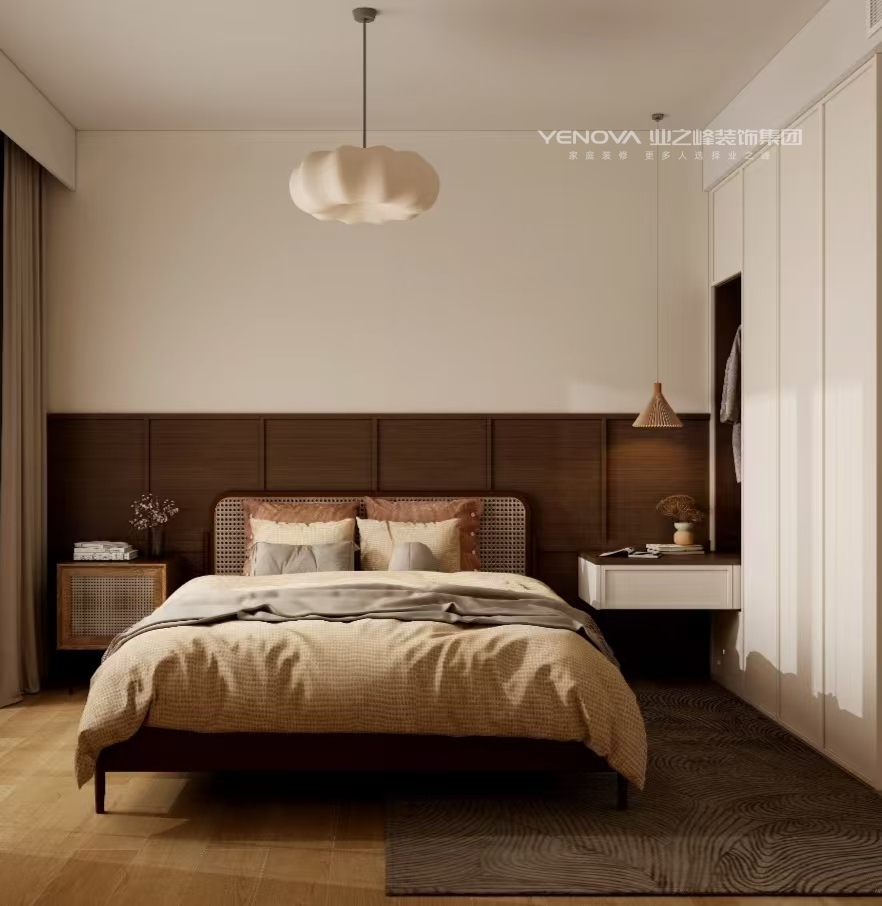 1.全屋以米色为主色调,木制胡桃搭配,加上局部黑色的参与,木色与米色的交织,现代简约感又不失温暖,营造出像被暖阳环抱的感受,温馨又舒适;我们将中古风的极简线条与原木的温润质感融合,自然与人文的双重交汇,每一道木纹都是岁月的留痕,总之我们就是想营造出恰到好处的温柔复古感。
