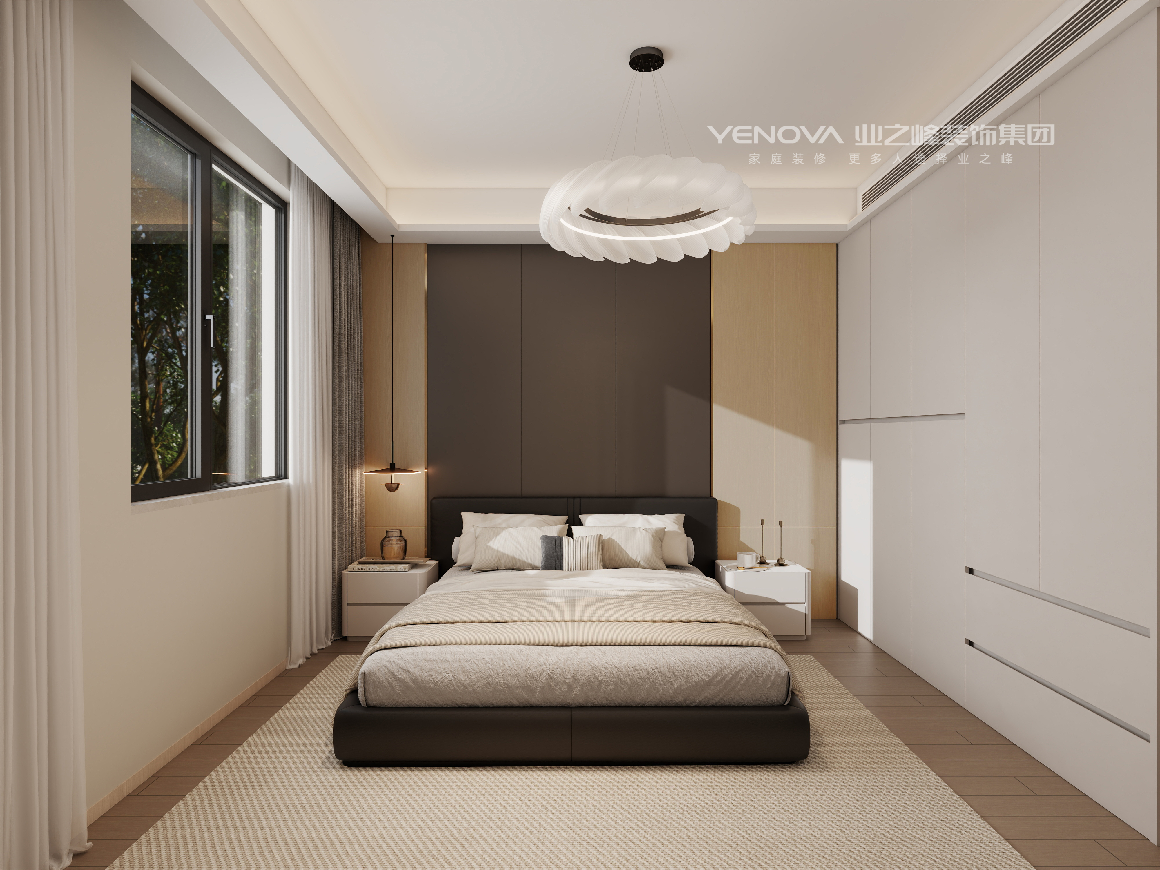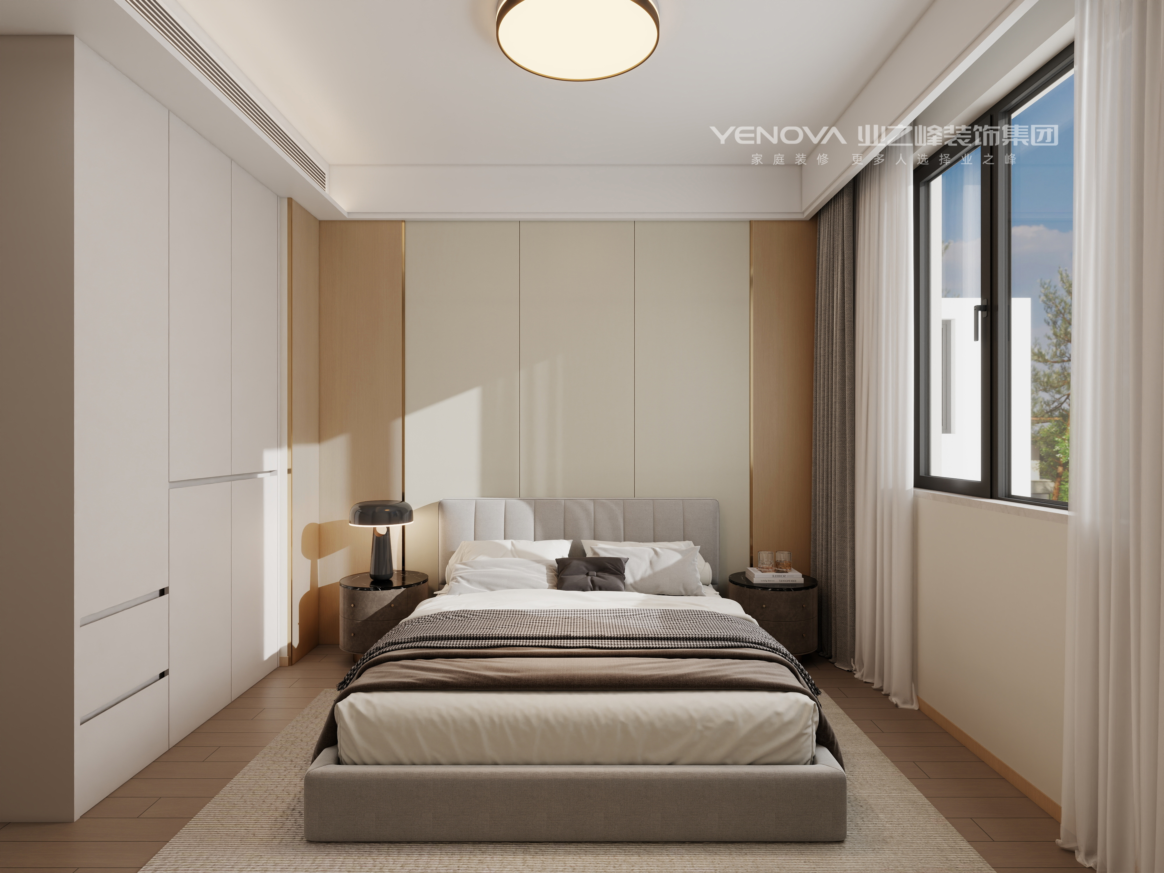 卧室主卧与次卧均以简约线条为主,床头背景墙的木质与软包结合,搭配精致的台灯与床品,在保证休憩空间静谧舒适的同时,通过细节(如金属装饰边、质感面料)传递轻奢质感。洗衣房与厨房采用一体化设计思路,厨房的定制橱柜以简洁造型呈现,嵌入高端家电;洗衣房的功能化布局与精致的墙面处理,让日常家务空间也充满品质感,体现轻奢风格对 “全域精致” 的追求。交工期间对全房各种细节精准把控,地上的壁纸与角线的衔接,墙面与柜体的拼缝,抽屉层板之间的连接无不体现什么是细致。