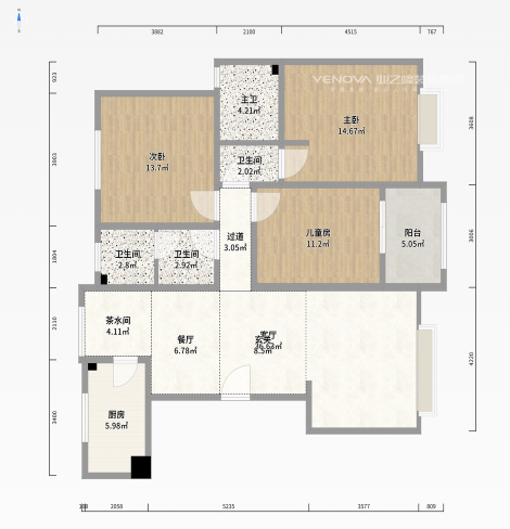 小区:元和聚宝苑 面积:140㎡ 户型:三居 风格:现代简约风格