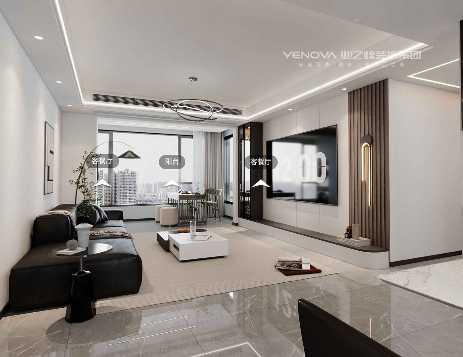 ·点缀色(10%):纯粹的黑色用于小体量家具、灯具、门框、踢脚线或装饰品,作为视觉焦点,强化空间