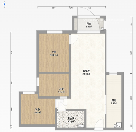 小区:中国铁建·西派国际 面积:90㎡ 户型:平层 风格:奶油风格