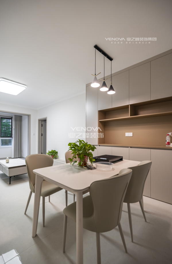 本设计旨在打造一个温暖、柔和且精致的现代奶油风三居室空间。整体氛围以低饱和度的温暖色调为主导,精心选用米白、奶咖、浅驼等奶油色系作为基底,构筑宁静放松的居住基调。村质搭配上着重体现自然与温润的触感,融合原木的天然纹理、微水泥的细腻哑光、绒布的柔软包裹以及藤编的手工质朴,共同营造出丰富的视觉与触觉层次。空间规划强调开放通透与静谧私密的平衡,公共区域如客厅、餐厅及相连阳台采用一体化设计,最大化引入自然光线并促进家人互动:而私密的卧室空间则专往于营造宁静舒适的休憩氛围,主卧室更贴心配置了独立的步入式衣帽间和功能完备的卫浴套间。具体到各功能区:客厅采用柔和的曲线造型家具,结合精心布置的无主灯设计,利用点光源与间接照明营造温多变的光影氛围;餐厅配置简约质感的木质餐桌椅,上方点缀一盏富有设计感的造型吊灯,烘托温馨的用餐环境;主卧延续整体奶油色调,着重强化其私密宁静的氛围与放松身心的功能;次卧或儿童房在统一的设计语言下,巧妙融入符合使用者个性的元素,满足不同年龄层的生活需求;多功能房则保持设计的灵活性,可轻松转换作为书房、休闲区或临时客卧使用。细节上,运用流畅的弧形线条(如拱门造型、圆角处理的家具及墙体)柔化空间棱角,增添绿植点缀以引入盘然生机。整体设计摒弃冗余繁复的装饰,通过材质本身的肌理美感、和谐统一的色彩过渡以及精心雕琢的光影效果,最终达成一个既充满温度又彰显精致品味的理想居所。
