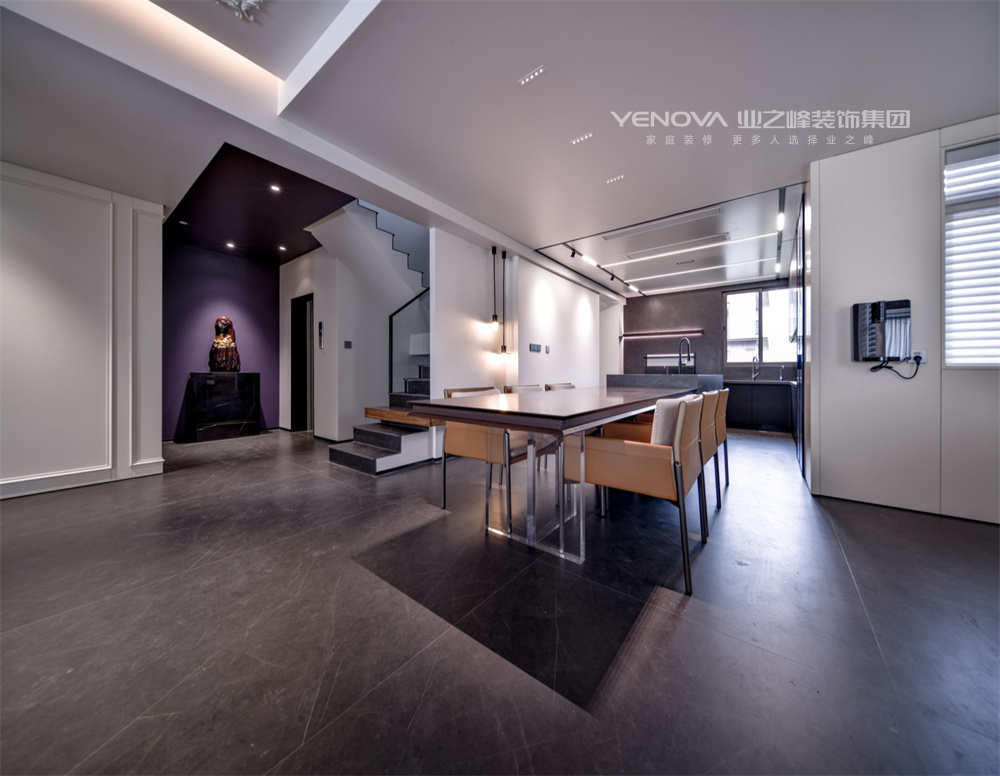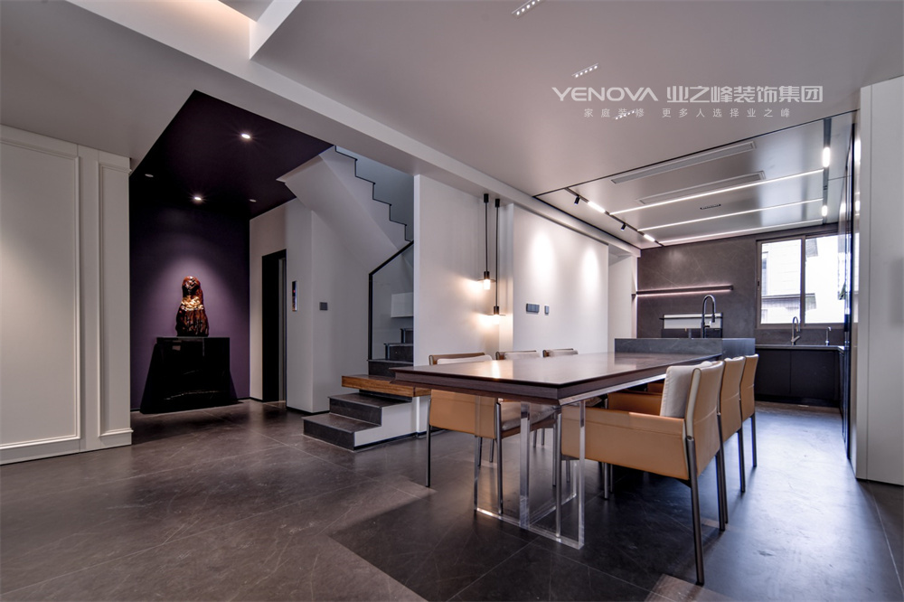 - 材质碰撞:深色哑光石材地面的厚重、亚克力餐桌脚的轻盈、皮质餐椅的柔润,通过材质反差增强空间层次;