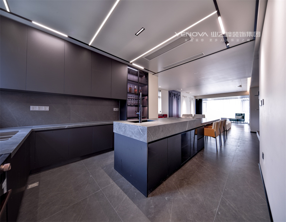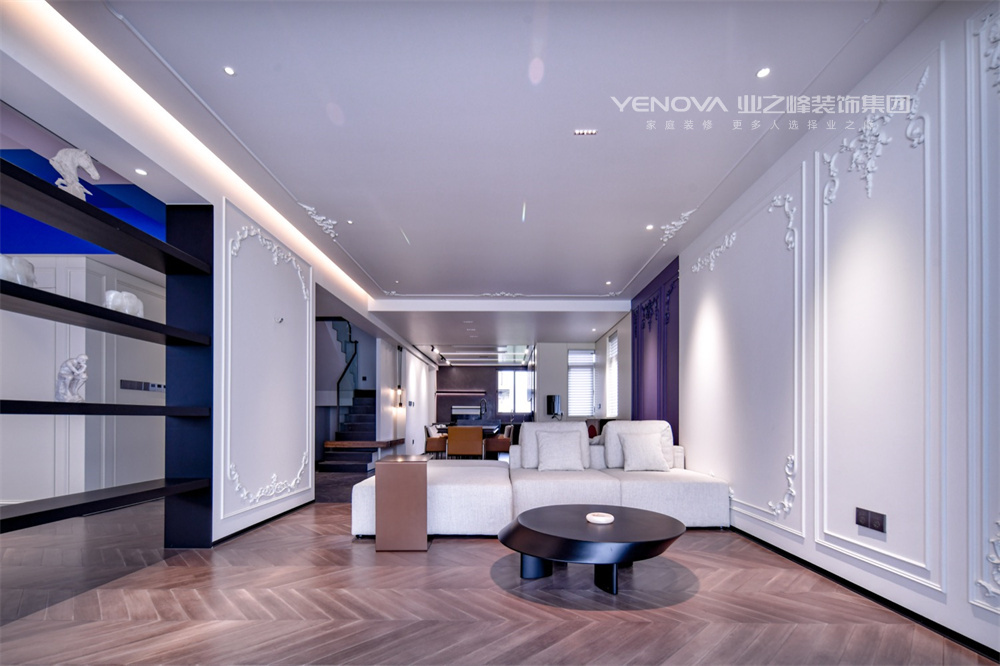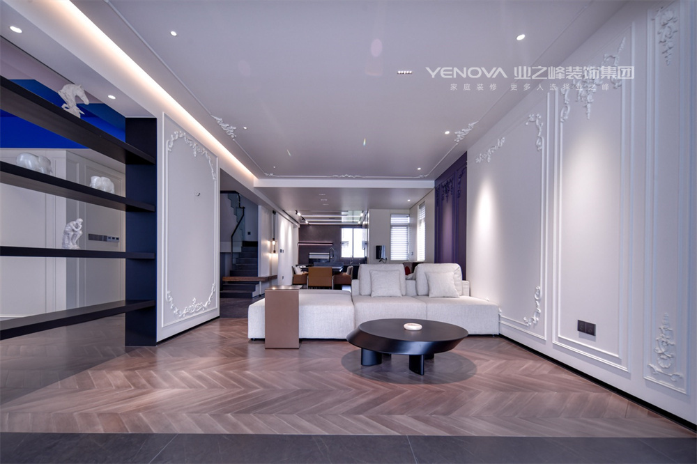 - 灯光设计:嵌入式点光+线性灯带+局部重点照明结合,既满足功能采光,也通过光影塑造空间的明暗节奏与艺术氛围。