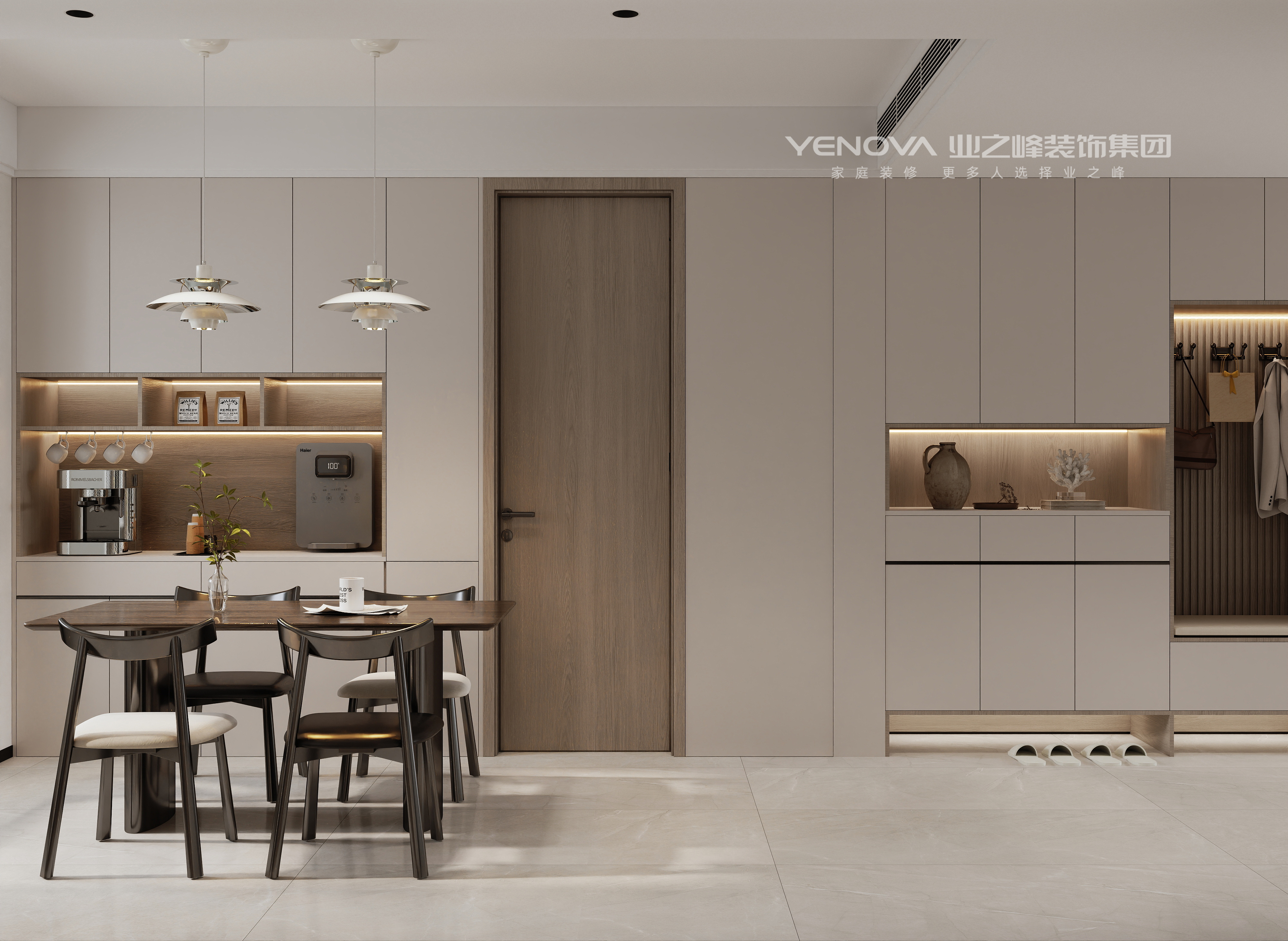 在现代风格家装设计中,空间布局非常重要,因入户正对墙在感官上让人产生拥堵感所以我们对其进行了拆除换为柜子即给了入户更多储物空间又缓解了进门后给人的拥堵感。