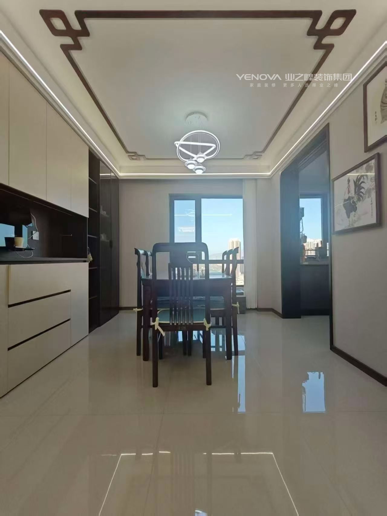 此家装以简约实用为总体思路。客厅宽敞明亮,中式家具搭配字画,营造沉稳氛围。餐厅采光佳,收纳充足。厨房布局合理,操作方便。卧室兼具休息与学习功能。整体设计亮点在于将实用与美观结合,注重空间利用与采光,打造出舒适宜居的家庭环境。