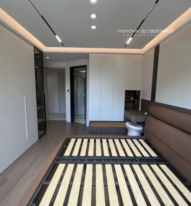 主卧是舒适与格调的融合,棕色皮质床具质感