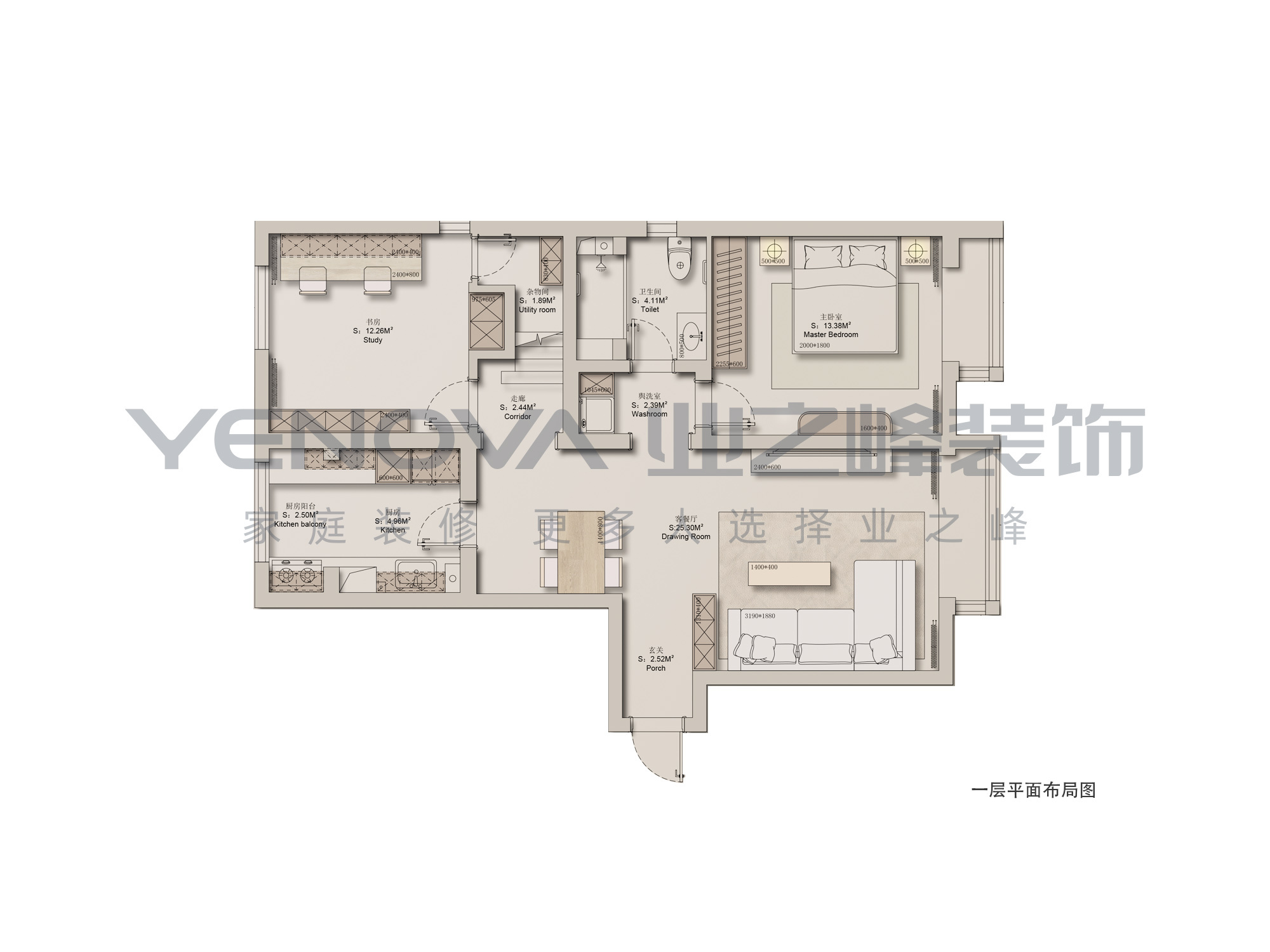 空间规划遵循 “动静分区” 原则:公共区域动线互通,形成开放式社交场景,满足家庭互动与待客需求;私密区域相对独立,保障生活私密性。