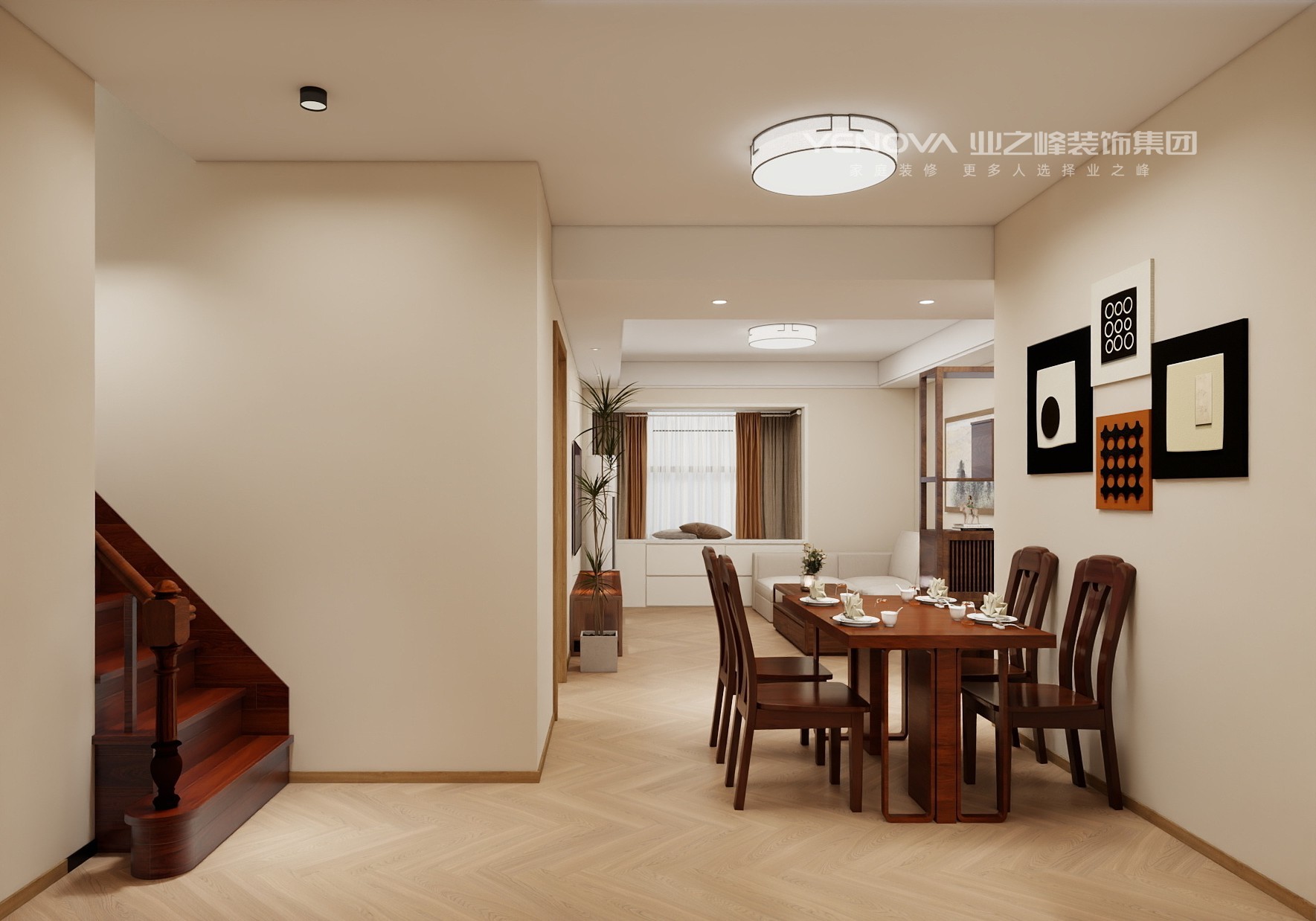 大面积运用原木材质搭配米色、白色乳胶漆,自然纹理与柔和色调交织,传递出温暖治愈的居住氛围;地面人字拼木地板强化空间层次,墙面的简约处理则凸显材质本真质感。