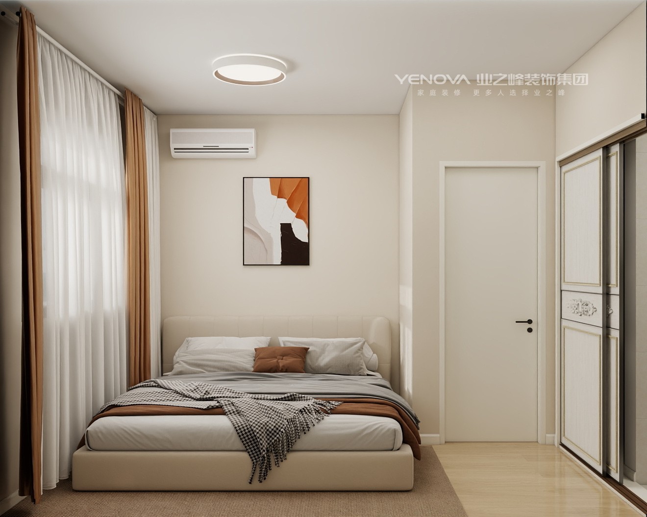 软装方面,装饰画的几何美学、绿植的自然生机、质感窗帘的层次搭配,让空间在简约中尽显雅致。