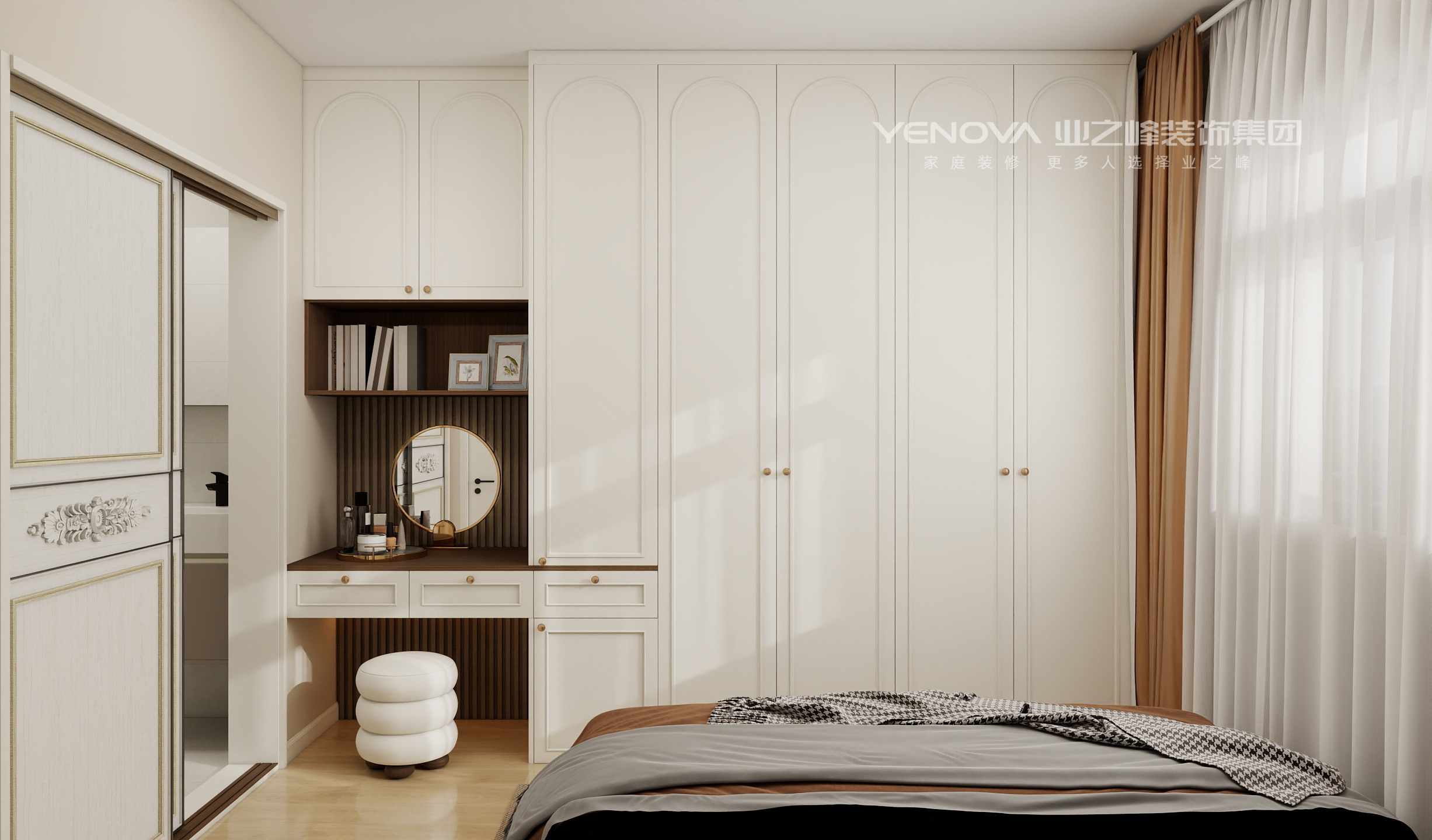 卧室定制衣柜与梳妆台一体化,兼顾衣物收纳与美妆需求;客厅、书房的满墙书柜 + 多功能柜,实现 “藏露结合” 的海量储物;
