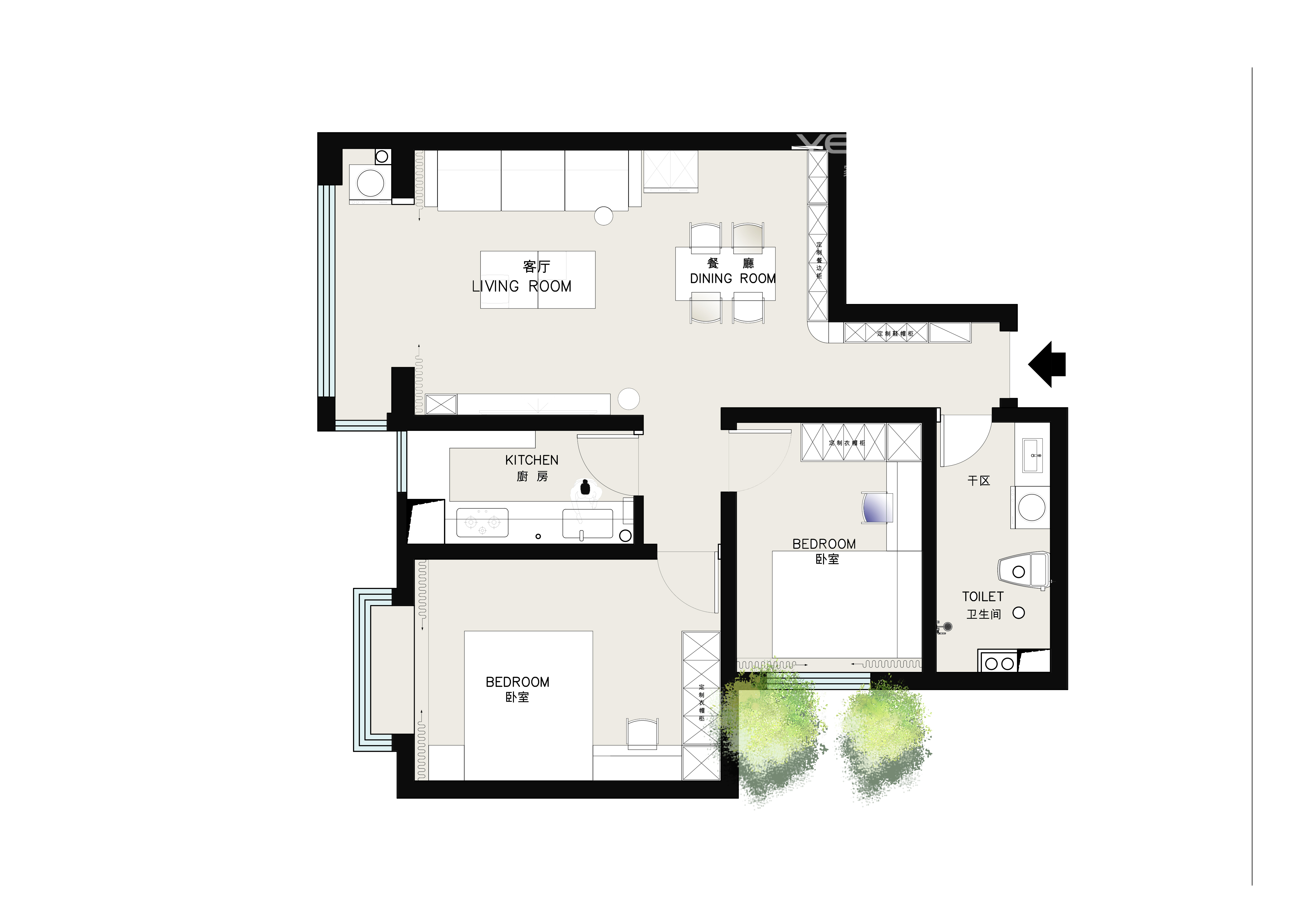 62㎡二居现代简约风格星耀五洲琥珀银滩