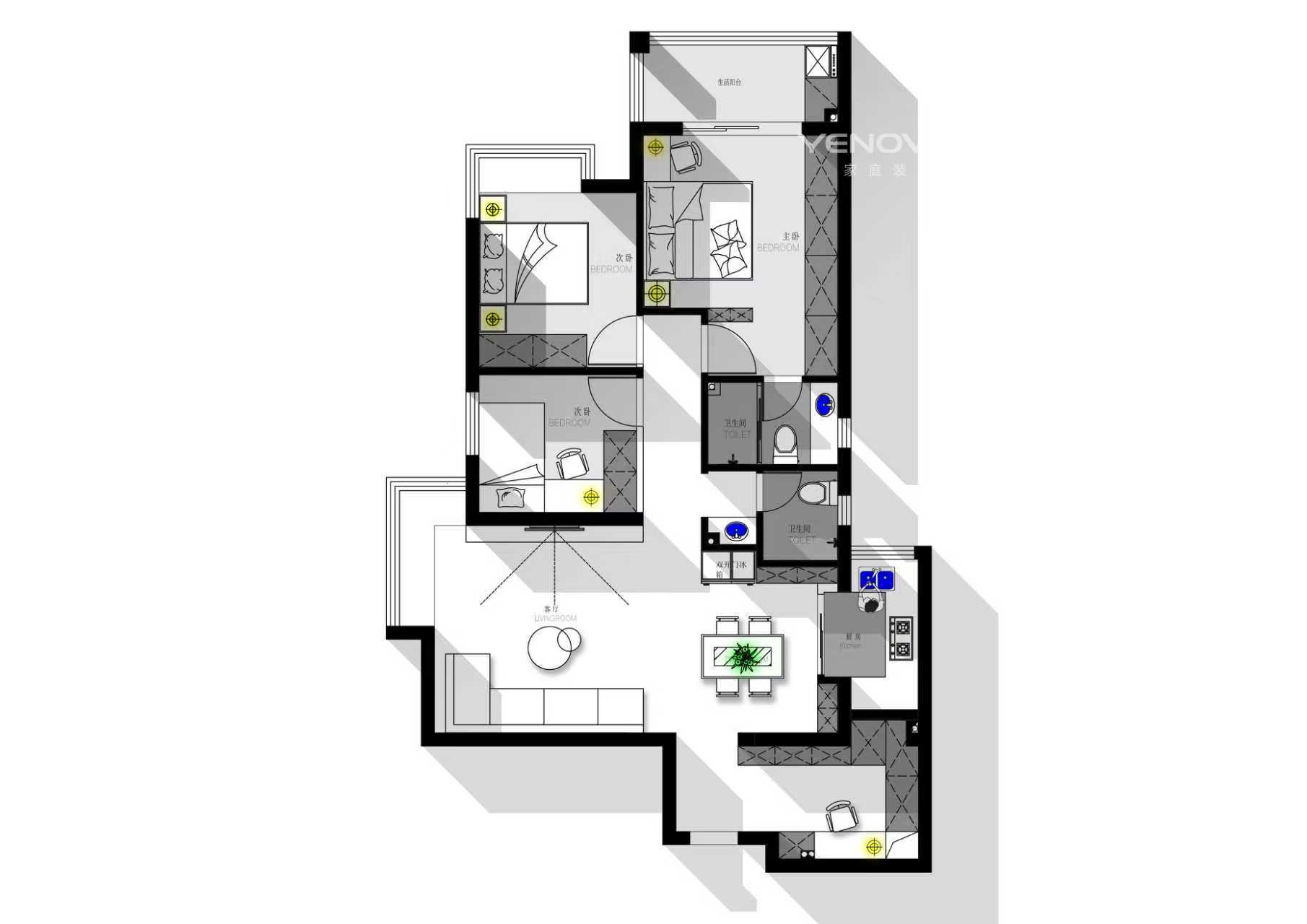 小区:金色华府 面积:108㎡ 户型:三居 风格:现代简约风格