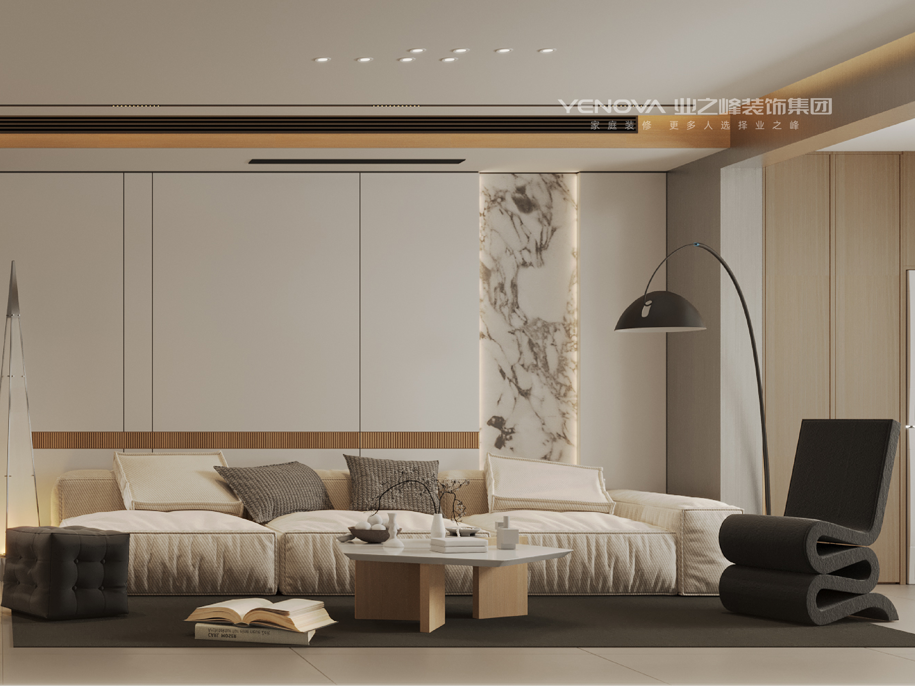 这套空间以现代轻奢风格打造,通过低饱和主调 + 质感材质 + 精致细节,平衡高级感与舒适感: