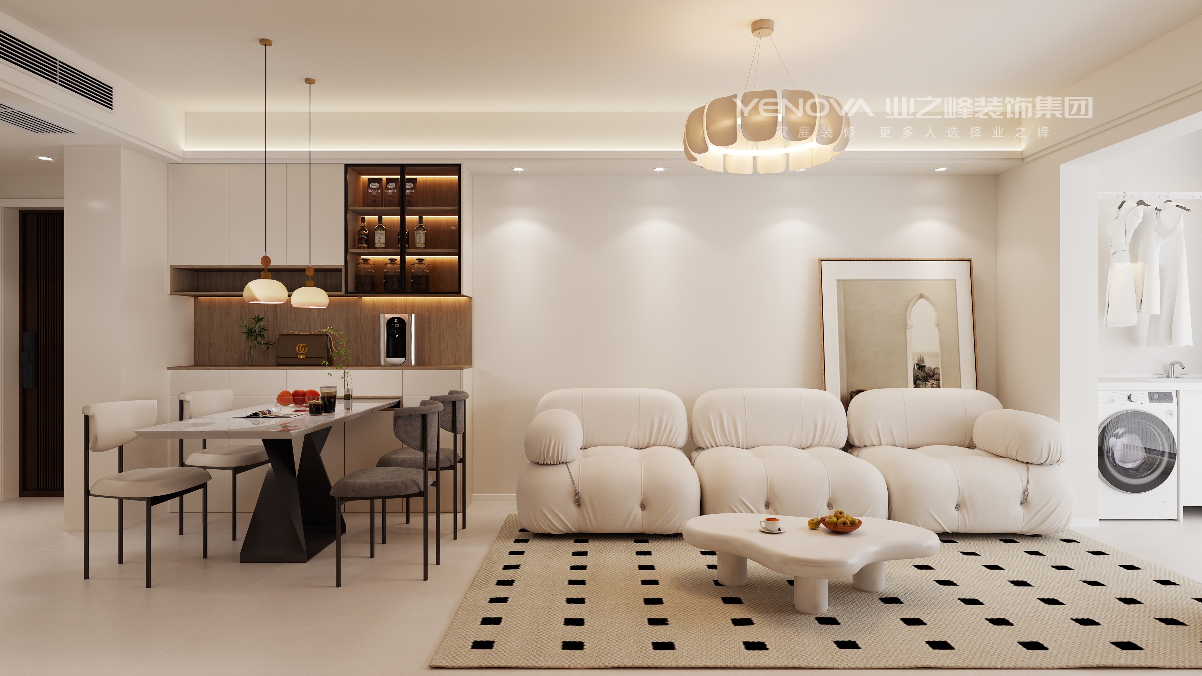 客户是一对夫妻,有小孩,但因为夫妻俩较为年轻,想法观念都较为年轻偏现代化一点,且家中老人只是偶尔来居住。最终本案例确定为现代简约风格,硬装简单明了,温馨宜居。本案例设计原则是可以适用两代人的喜好,软装就偏现代流行的。原始的三房结构继续保留,客厅阳台打通,与客厅形成一体,阳台上有洗衣区和晾晒区,还有储物空间可放扫地机器人,客厅选择简洁大方的家具,沙发与茶几的组合凸显空间的宽敞感更整洁,阳光直射,采光更好,视野更加开阔,且客厅与餐厅相连,插入式餐桌,更节省空间,增加通透感。厨房面积有限,不适合开放式厨房,原有的厨房空间不变,冰箱还是放在厨房。主卧阳台处可作为休闲区,看看书、写写字。次卧收纳空间想要多点,做了双层抽屉柜,增加收纳空间。全房木色地板安装,温馨美观又有质感,客户不希望满吊顶,在保留了主灯提供主照明以外,我们设计了边吊顶隐藏线性灯,增加辅助光源,光源隐藏,室内光感更加柔和。过道处为符合业主喜好做了鱼缸。