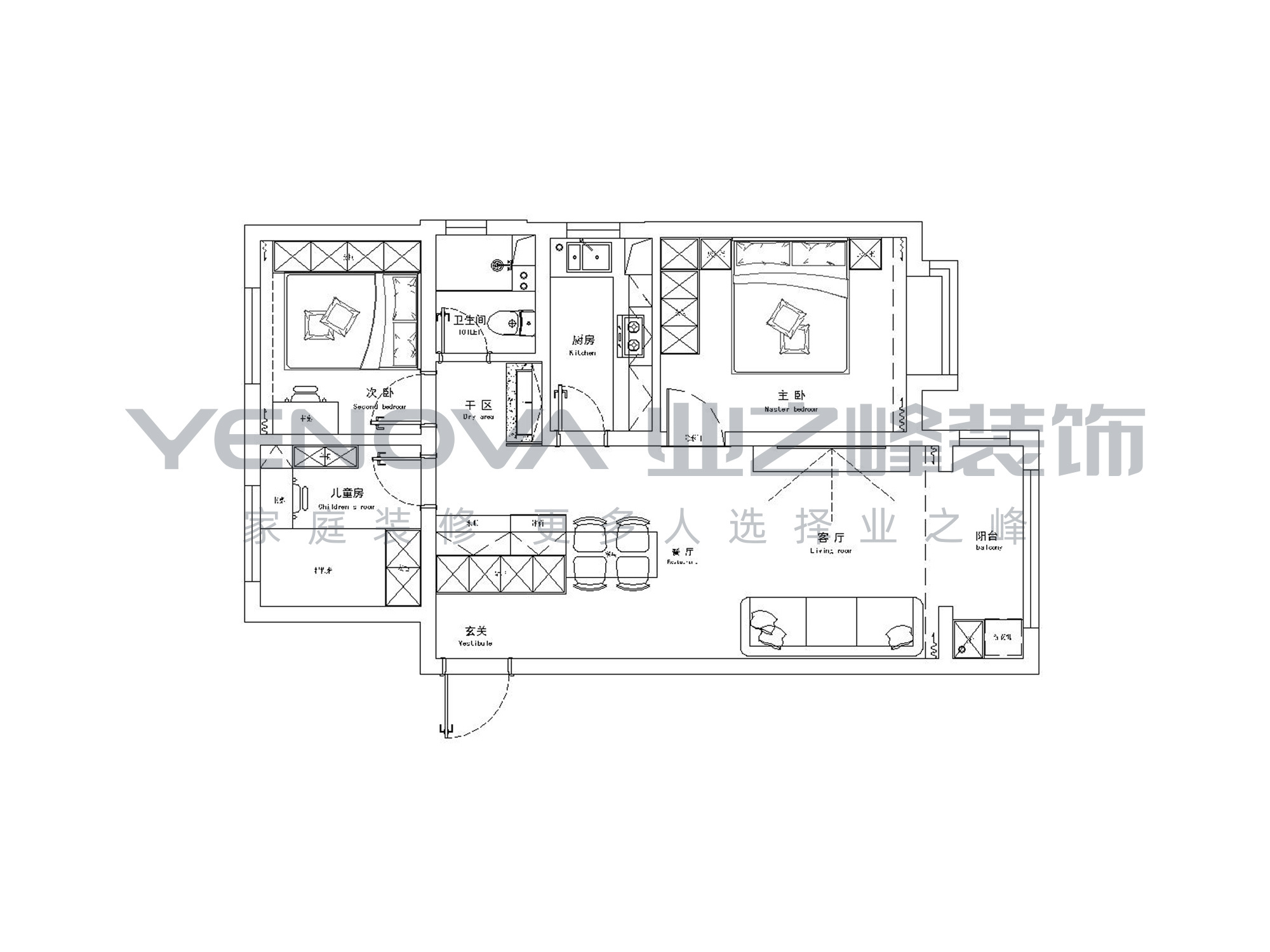 厨房-厨房的风格保持连贯性。采用L型最大化利用空间设计,提高工作效率,保证了厨房使用的舒适性,也有了足够的储物空间。