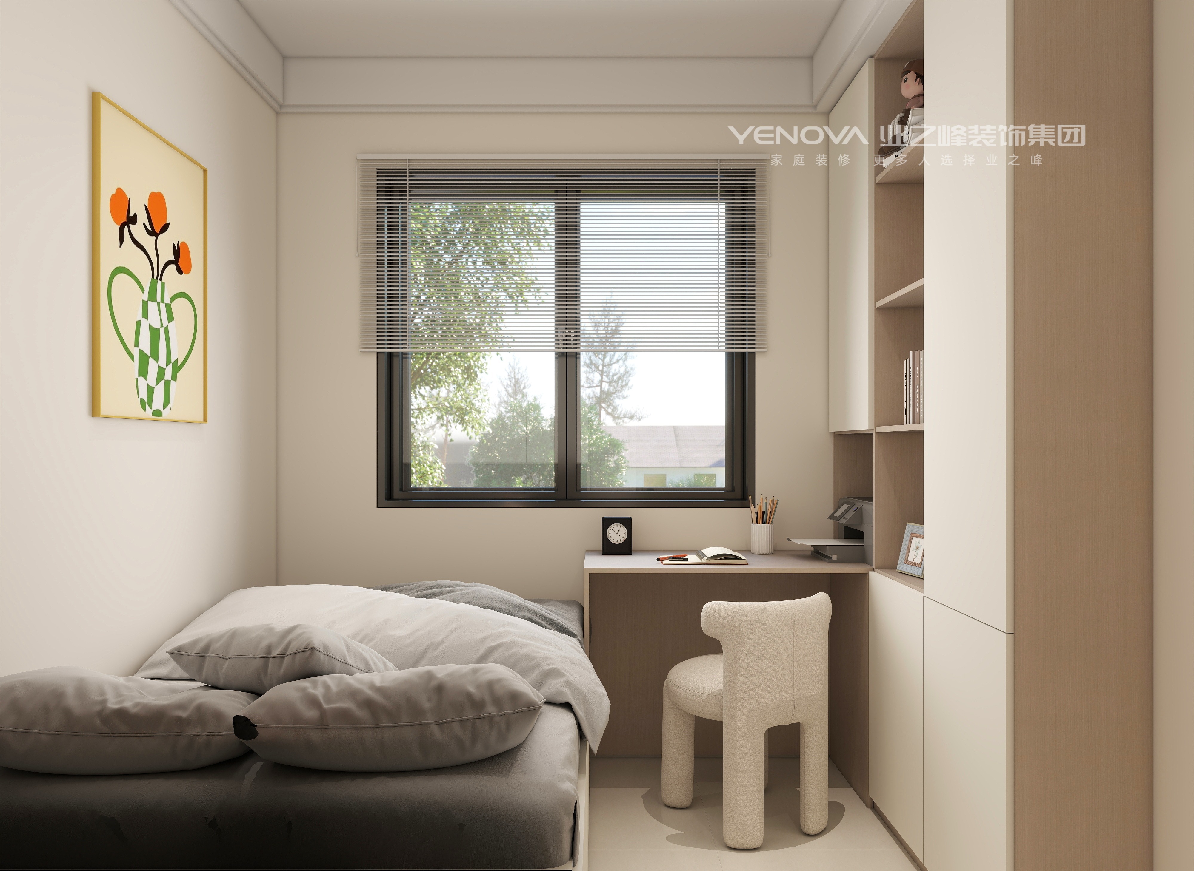 儿童房-儿童房采用奶油色调为主,搭配墨绿色,为学习办公增添色彩,合理安排储物空间确保书房的整洁有序。