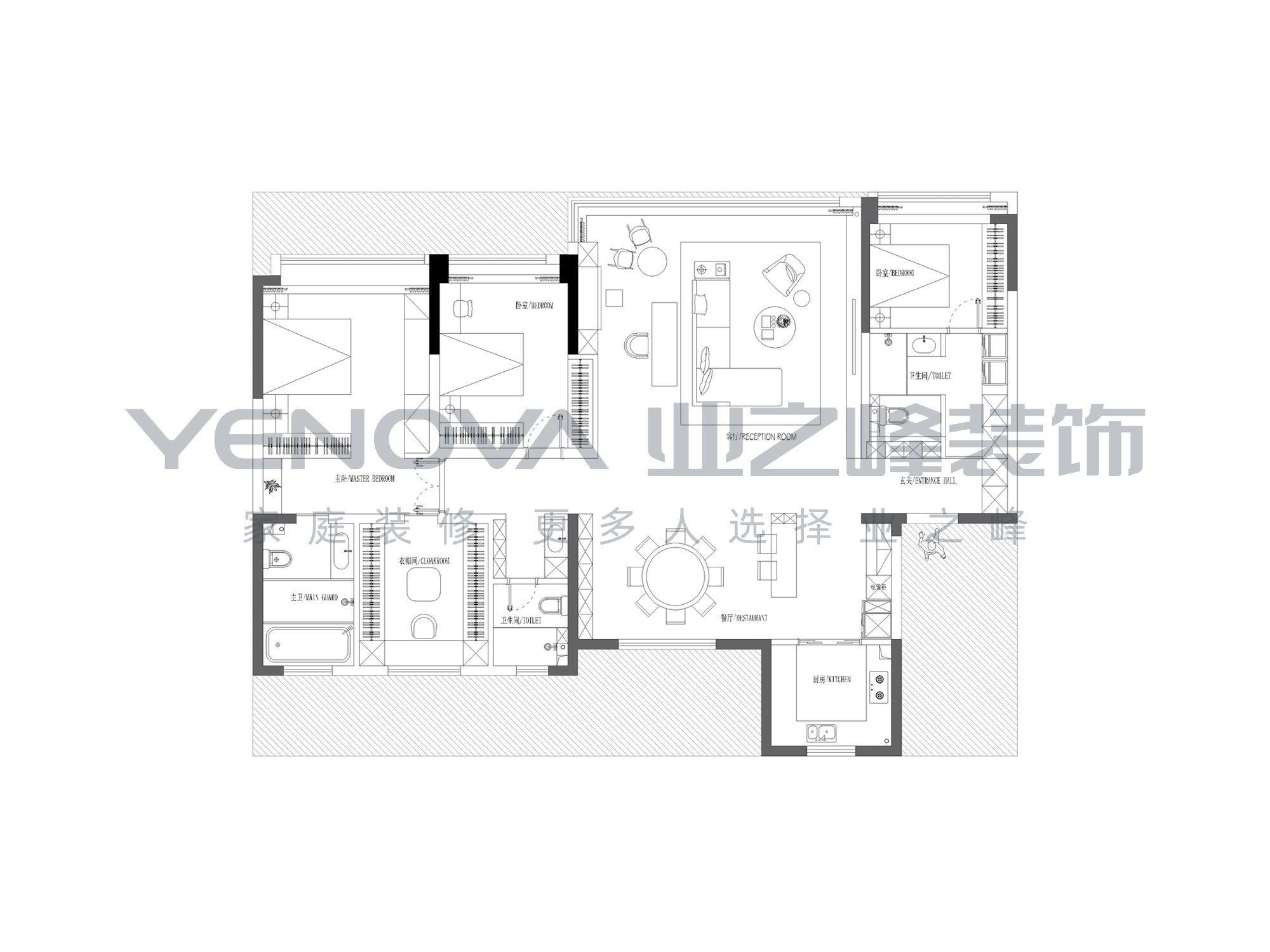 小区:新城玺樾春秋 面积:220㎡ 户型:四居 风格:轻奢风格