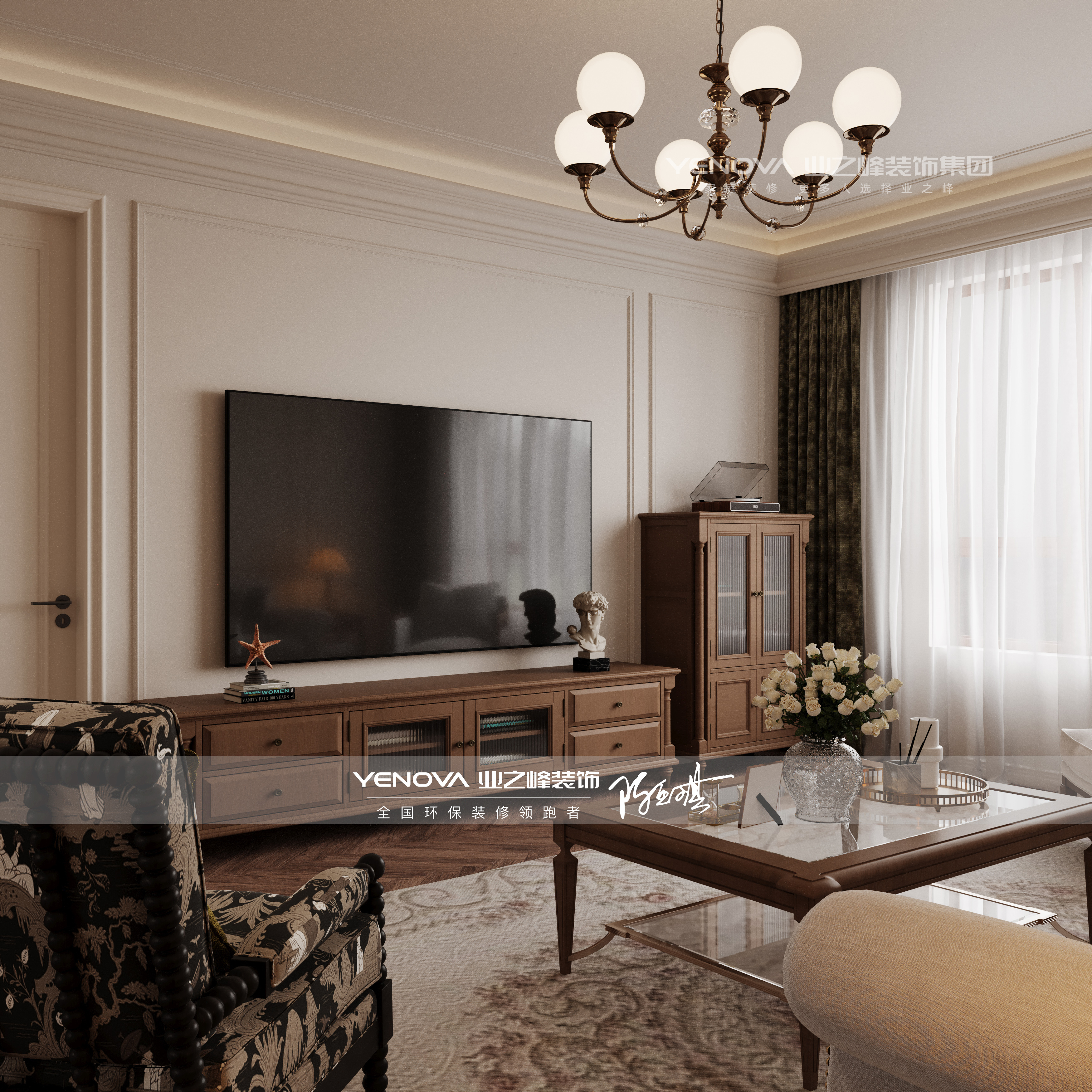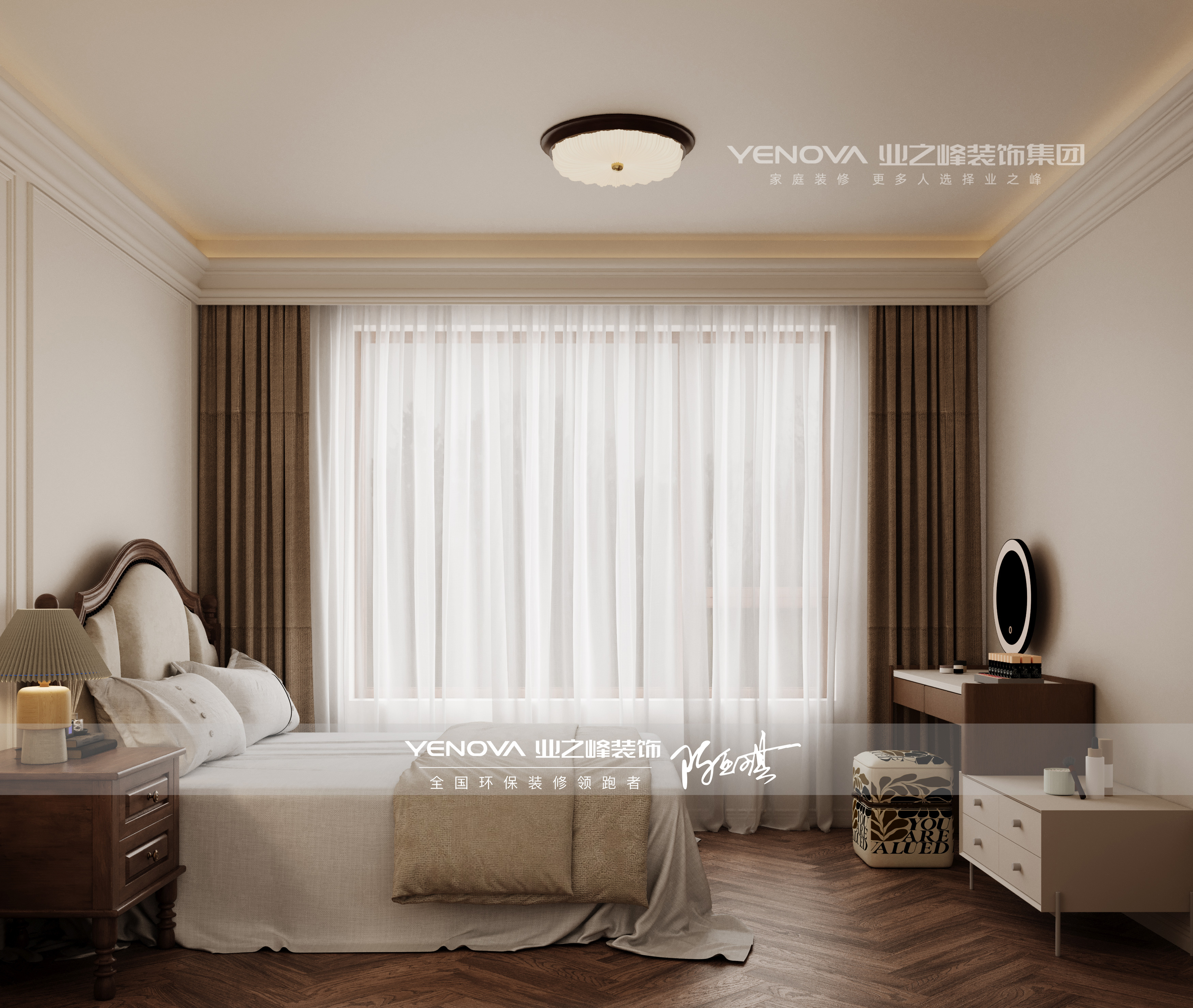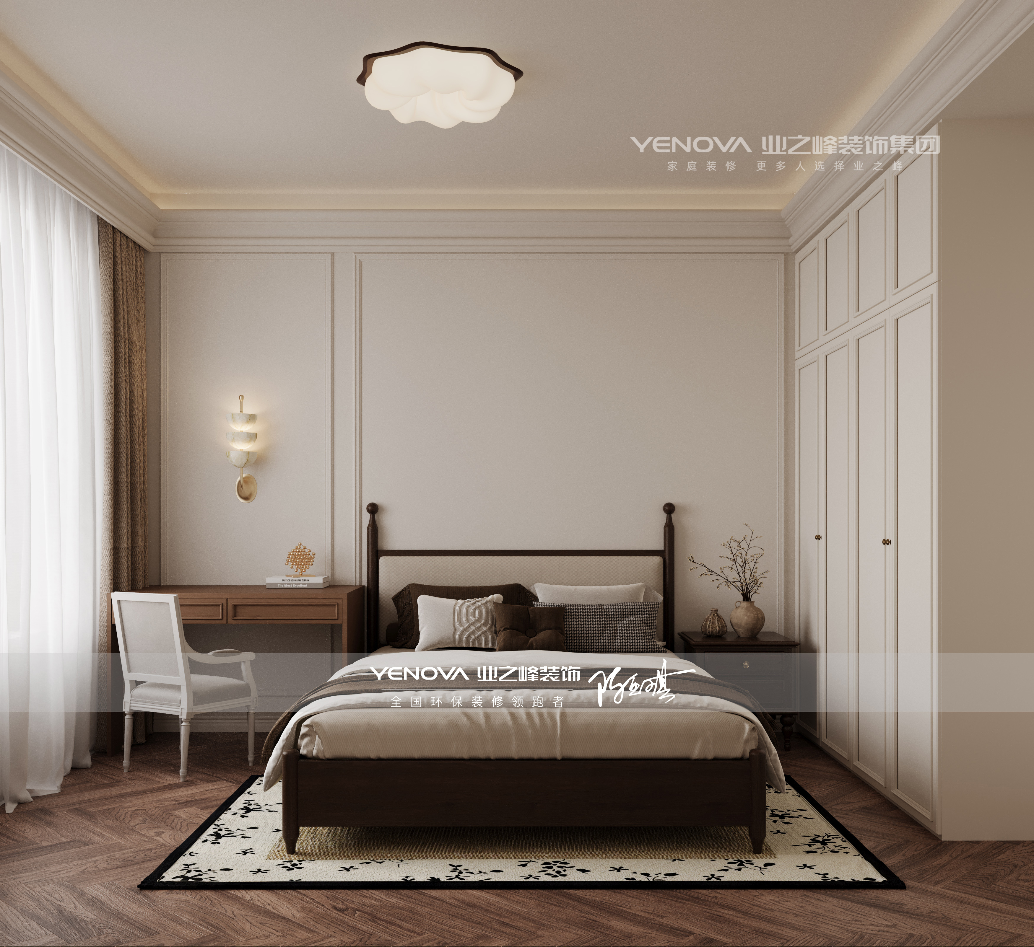 1. 核心思路:跳出“传统美式=繁复雕花”的刻板印象,以“优雅复古+当代舒适”为原创内核,将经典美式的「对称美学」原创选用胡桃木家具(属暖木)搭配米白+焦糖棕主色调,既保留美式的仪式感,又用简化的pu线条避免空间压抑,形成专属的经典美式表达。