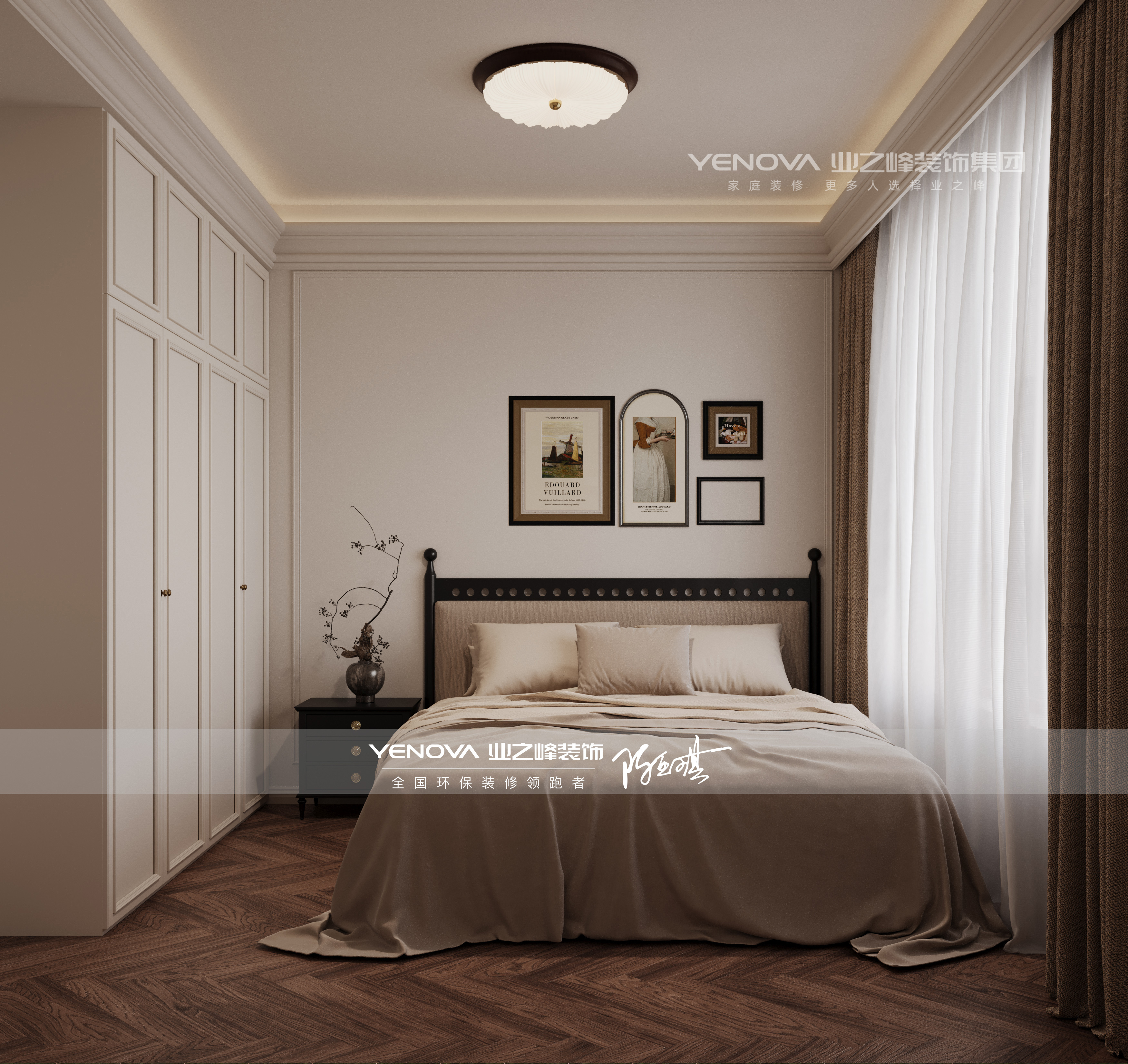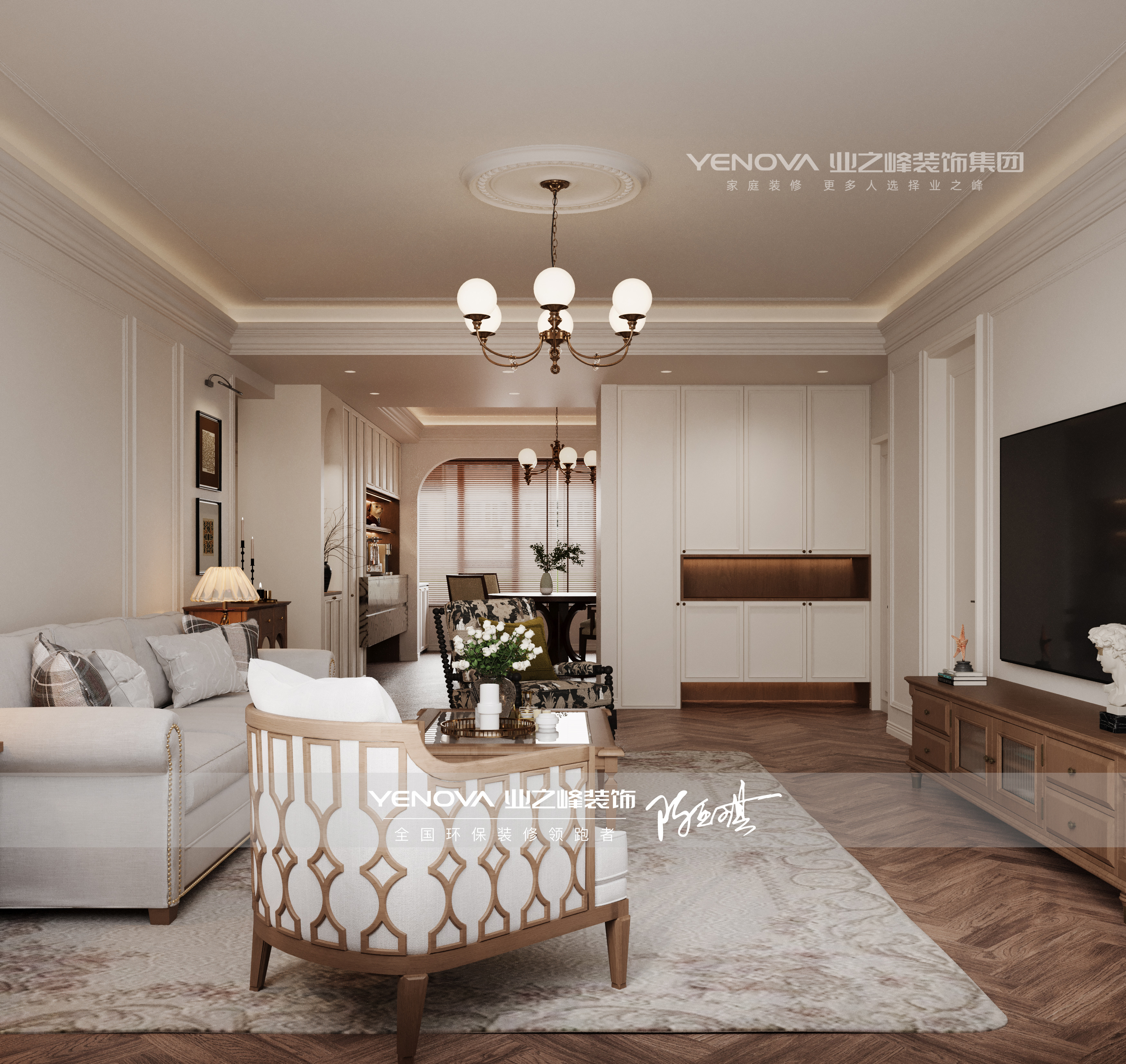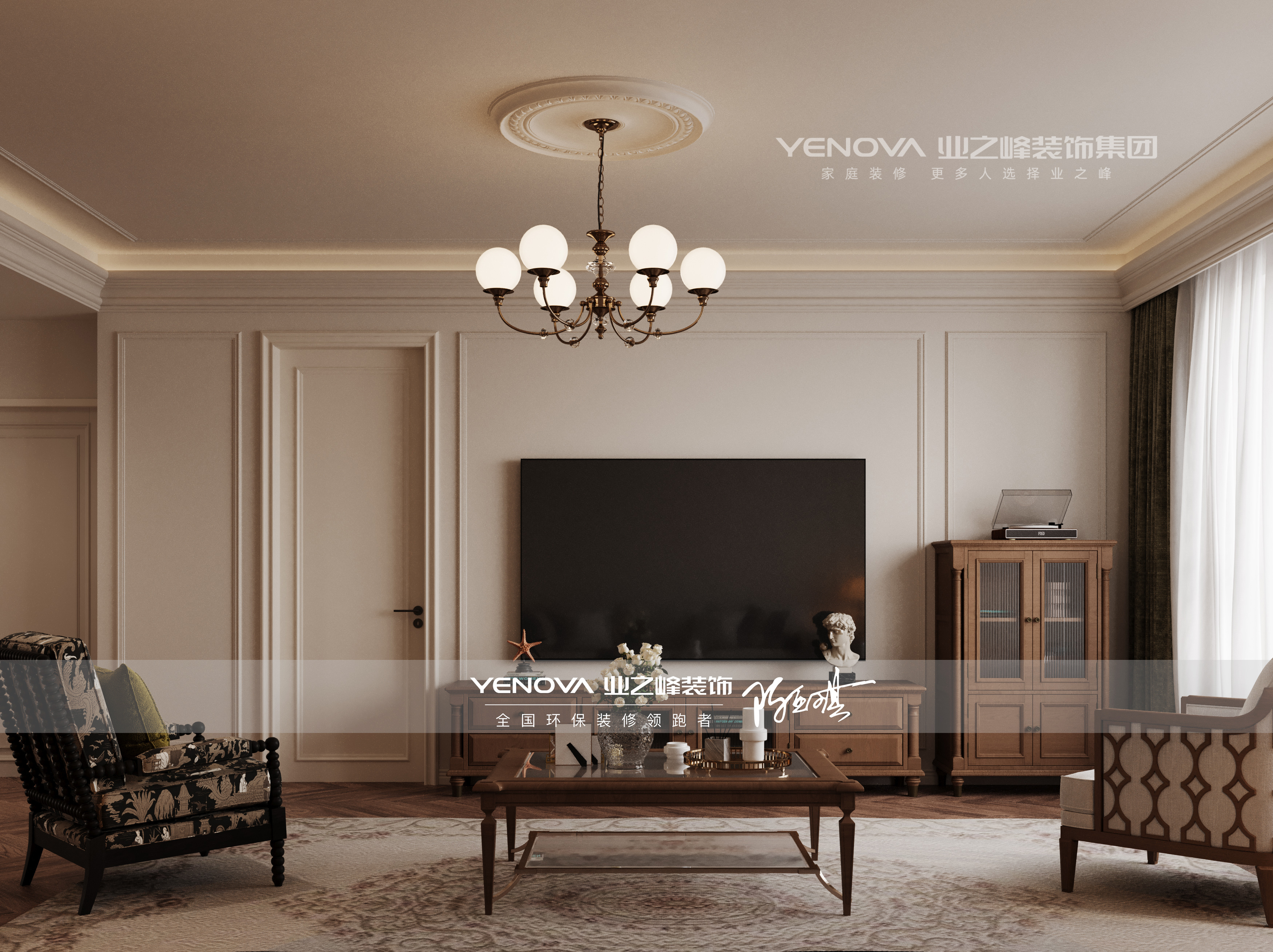 1. 核心思路:跳出“传统美式=繁复雕花”的刻板印象,以“优雅复古+当代舒适”为原创内核,将经典美式的「对称美学」原创选用胡桃木家具(属暖木)搭配米白+焦糖棕主色调,既保留美式的仪式感,又用简化的pu线条避免空间压抑,形成专属的经典美式表达。