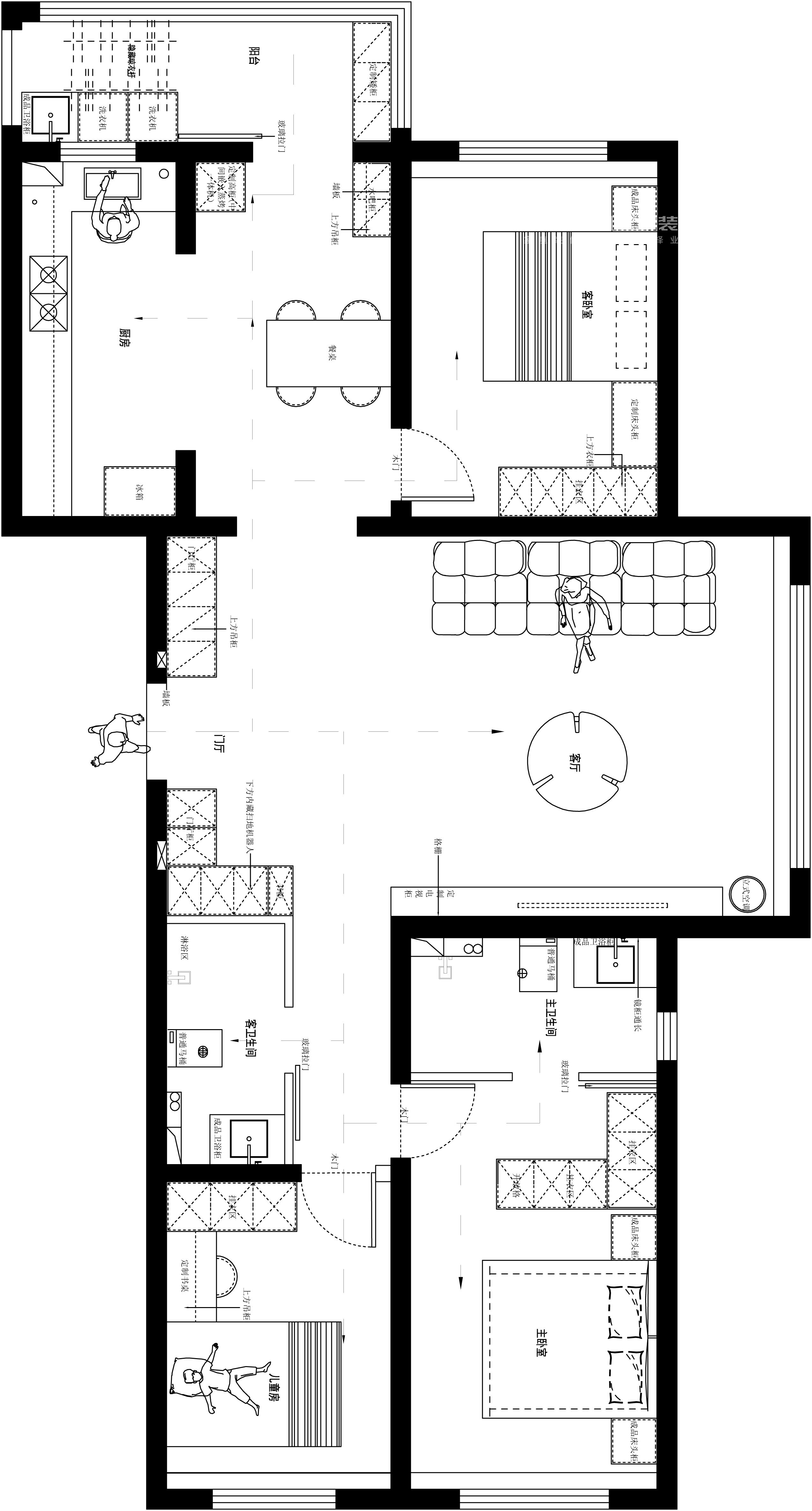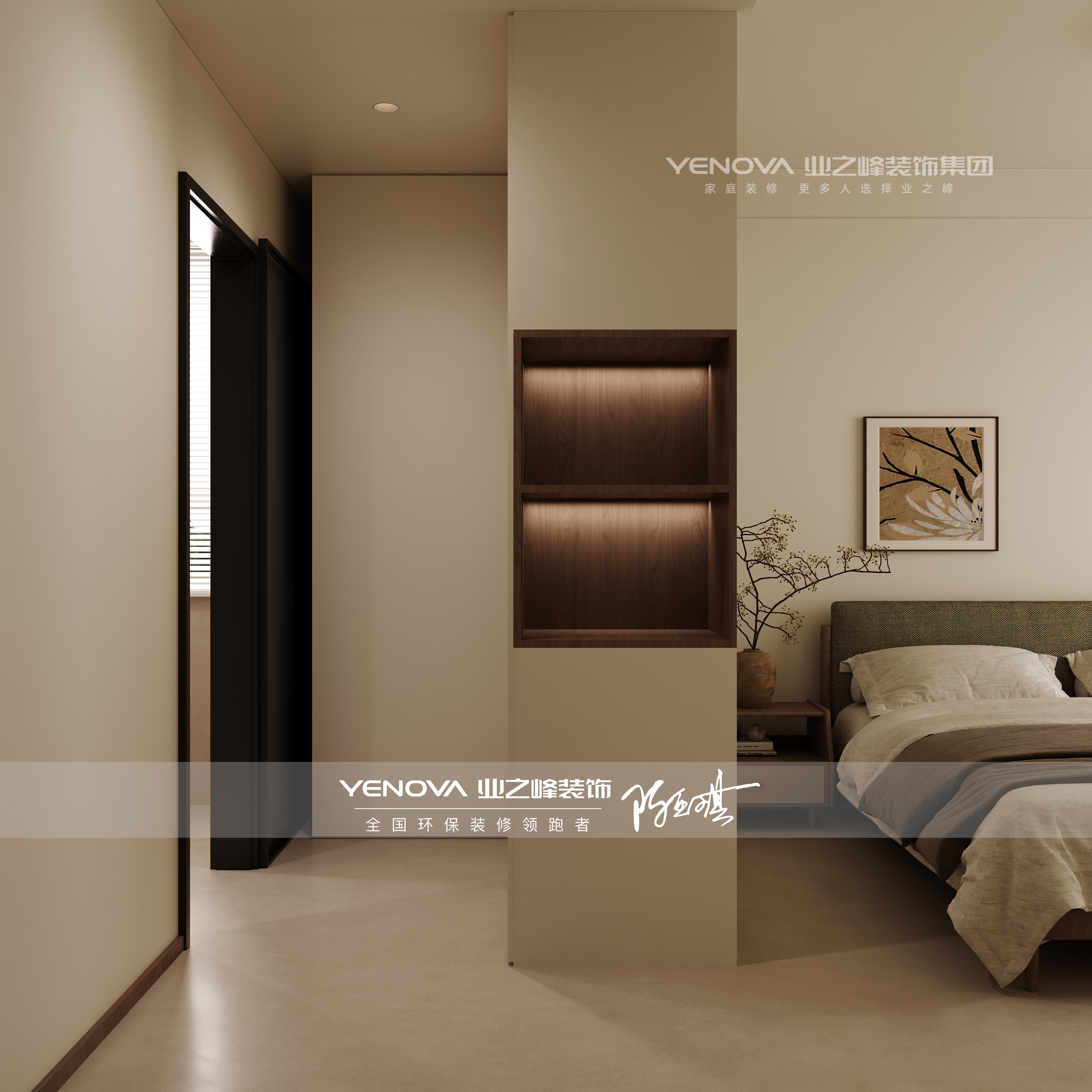 3. 原创亮点:客厅背景墙采用极简常见的纯色乳胶漆,主卧衣柜原创“顶天立地隐形设计”,门板与墙面同色,仅在柜门下沿留2cm灯光槽,夜间感应亮灯,既符合极简“隐形美学”,又解决收纳痛点,所有色彩配比、线条宽度均为独立设计