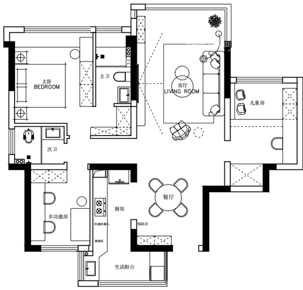 整体设计在简约中见精致,复古中显现代,既保留法式的优雅线条,又注入中世纪的经典魅力,创造出一种平衡而富有层次的美学空间。这种融合不仅提升了居住舒适度,更让每一处细节都诉说着跨越时空的优雅叙事。
