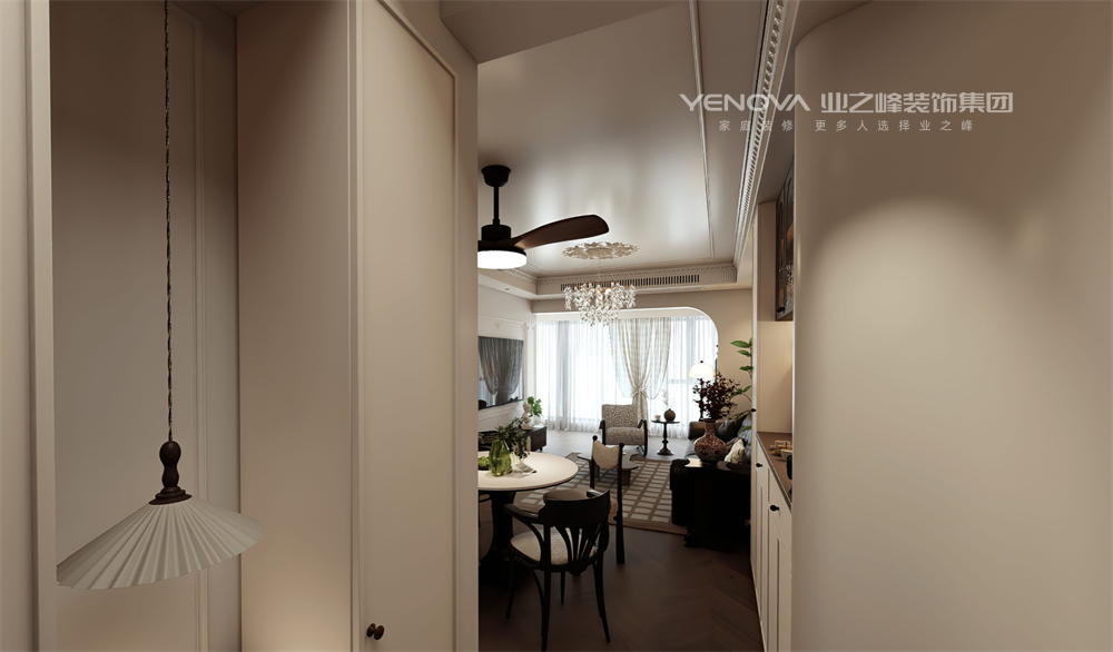 本案为新婚夫妇设计的婚房,男业主为公务员,女业主从商,需兼顾工作与家庭需求。设计融合法式精雕细刻与中古风格深厚底蕴,打造优雅且温馨的居住空间。