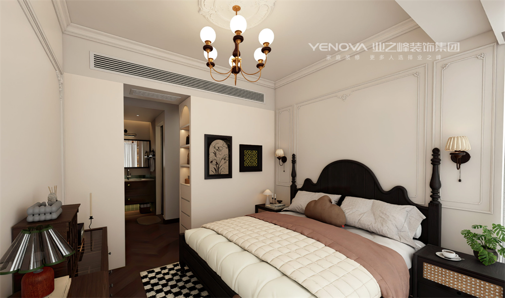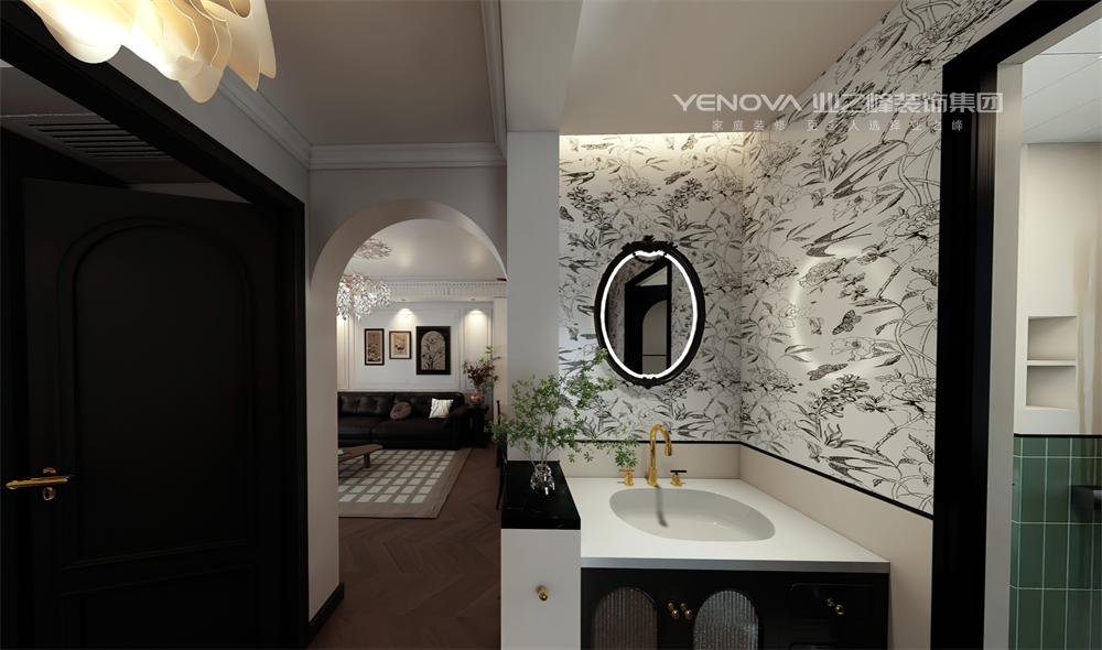 风格设计:法式元素体现在细节雕饰与柔美线条中,如石膏线装饰与拱形门洞;中古风格通过深色木质家具与复古色调呈现,营造沉稳氛围。