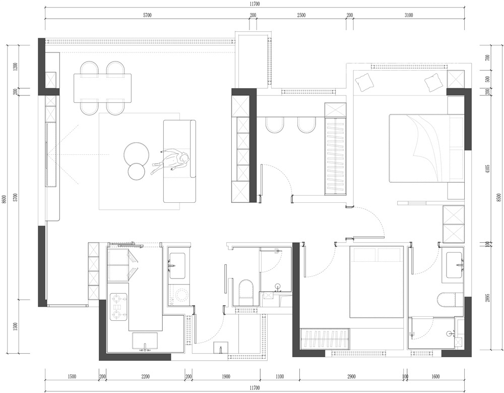 小区:东镜风华 面积:114㎡ 户型:二居 风格:现代简约风格