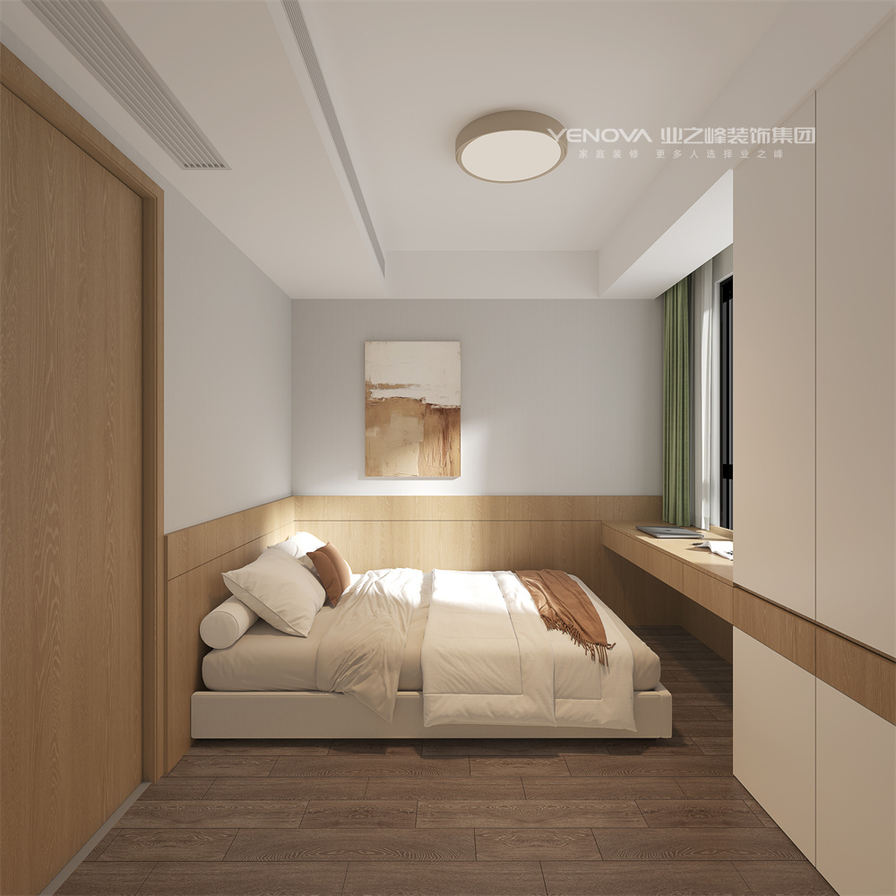 本设计以现代简约风格为核心,采用浅木色与白色为主调,通过自然材质的细腻纹理与柔和色调,营造出温馨、舒适且富有质感的居住氛围。空间布局上,注重功能性与美学的平衡:客厅采用开放式设计,通透开阔,搭配落地窗引入充足自然光,增强空间流动性;卧室以舒适雅致为基调,选用柔和的灯光与简约家具,打造宁静的休憩环境;书房则强调收纳与功能的结合,内置定制书架与工作台,既满足储物需求,又提升工作效率。整体设计摒弃冗余装饰,以简洁线条与实用布局为核心,通过浅木色与白色的和谐搭配,强化空间的自然感与现代感,最终呈现出一个简洁实用、充满生活气息的居住空间。