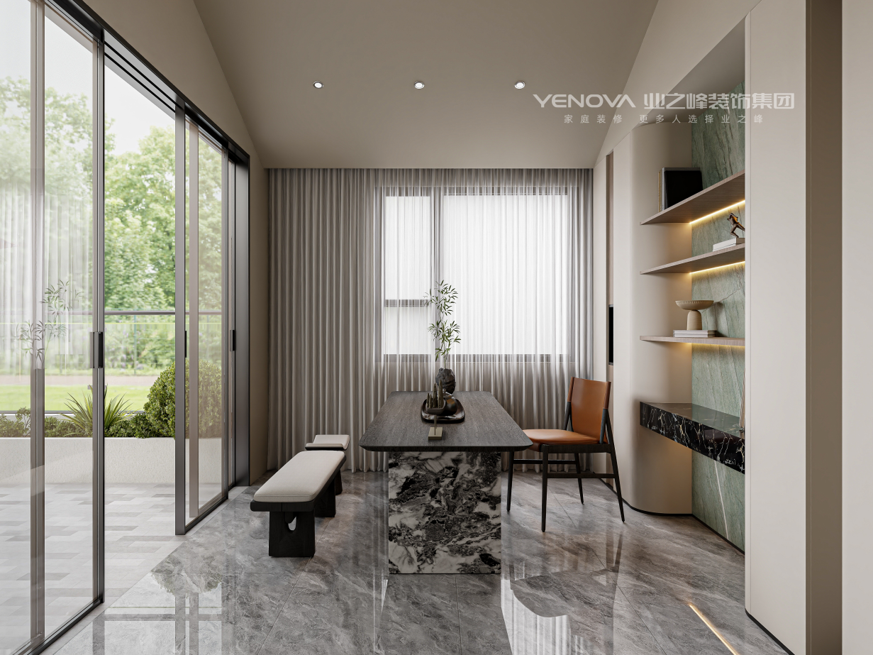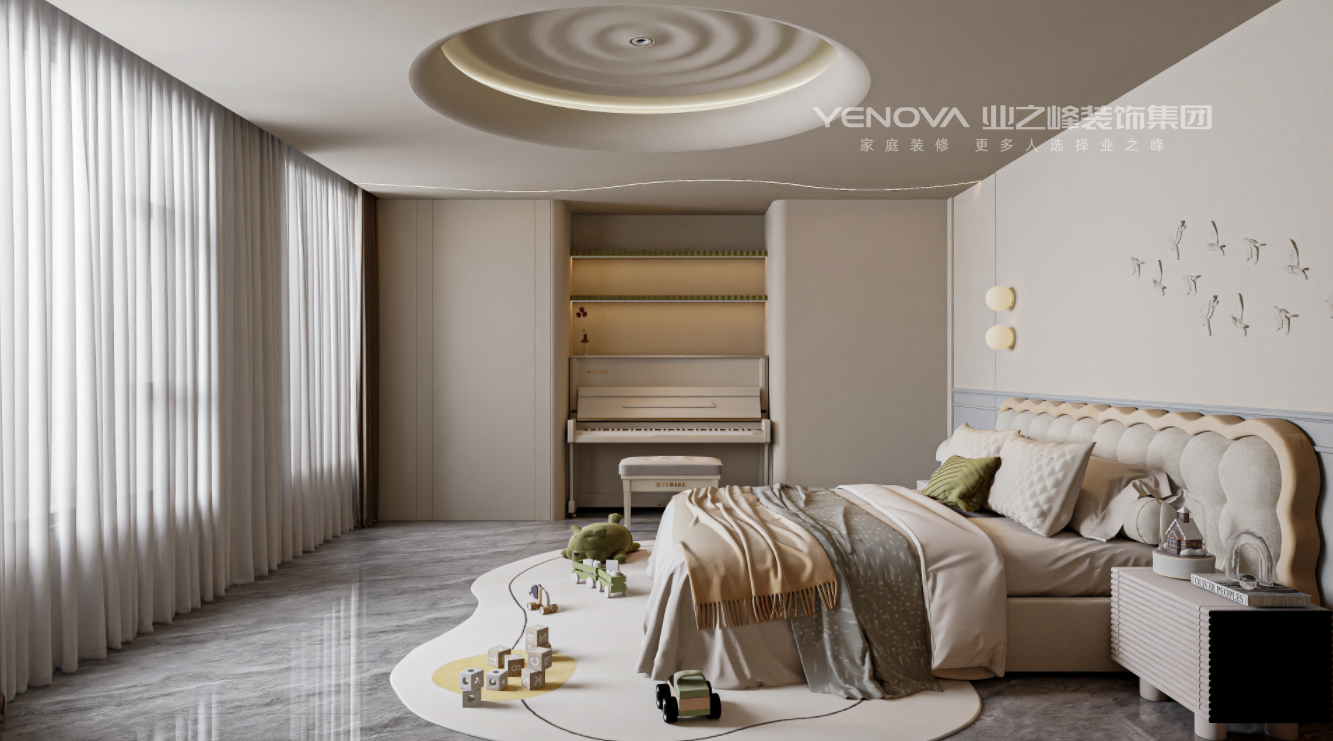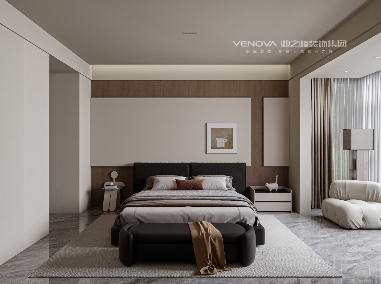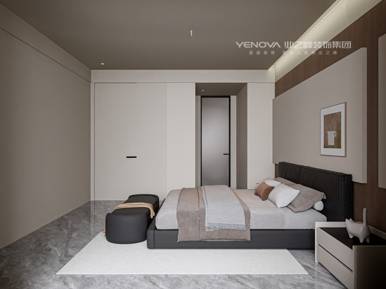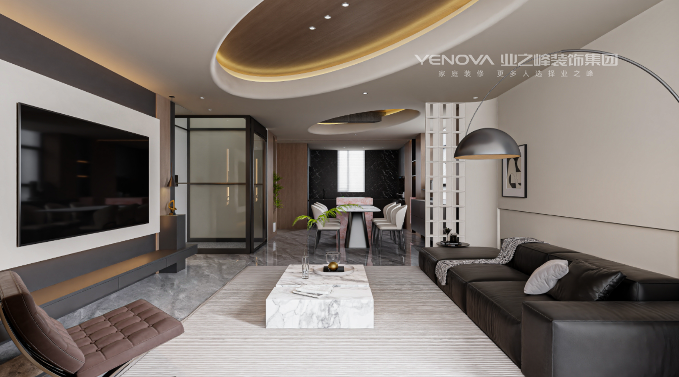真正的高级,从不是冷峻疏离的堆砌,而是让质感与舒适撞个满怀。深棕木饰面衬着柔雾白墙,墨黑皮质沙发落进大理石纹理的呼吸里,圆弧吊顶的暖光揉开冷调石材的锐利,粉调吧台添上几分柔媚 —— 这份设计,打破了 “高级即冷峻” 的偏见,将现代质感稳稳揉进日常,让每一处细节都落在舒适的刻度里,诉说着 “高级本就该是舒服的模样”。材质的对话与平衡,是舒适高级感的根基。冷调与暖调的碰撞,没有非黑即白的对立,只有刚柔并济的和谐:深棕木饰面带着自然的温润,裹住空间的温柔底色,其细腻的肌理与柔雾白墙形成柔和过渡,消解了纯白的冷淡;墨黑皮质沙发的沉稳与大理石的净透相映成趣,皮质的细腻触感与石材的清冷质感碰撞,既生出利落的现代质感,又因木饰面的介入而不显得生硬。玻璃隔断与衣帽间的通透,让材质的层次更显丰富:玻璃的清透不遮挡光影流动,让深棕木调的温润、墨黑皮质的沉稳、大理石的净白在空间里自由呼吸,没有厚重的压抑感,只有通透利落的舒适。米白软榻的软糯、粉调餐桌的柔媚,更是为冷调材质注入了温柔底气,让皮质的沉、石材的锐、木调的稳,都在柔软材质的中和下,化作触手可及的舒适。光影的营造,是揉碎冷意、沉淀松弛的关键。圆弧吊顶是空间的温柔使者,暖光顺着圆弧的弧度缓缓漫开,没有锋利的光影切割,只有柔和的光晕包裹着整个空间 —— 餐区的柔椅被暖光裹住,用餐时光多了几分惬意;床头的暖光轻轻洒落,揉碎了材质可能自带的冷意,让休憩空间满是治愈感;悬浮吊顶的光漫过每处角落,电视墙的留白被光影填满,没有多余的装饰,却因光影的流动而显得生动。玻璃隔断让光影拥有了自由穿梭的权利,白日里,阳光透过玻璃漫过木饰面、石材与皮质,让冷调材质染上暖光的温度;夜晚时,室内的暖光透过玻璃折射,与室外的夜色相映,让空间既有现代都市的精致,又有居家的静谧松弛,每一束光都在为 “舒适高级” 注解。空间的气质,藏着 “刚好舒适” 的生活哲学。没有繁复的装饰堆砌,电视墙的留白里藏着松弛,粉调吧台又添了几分柔媚,取舍之间,恰是高级感的真谛 —— 不刻意追求极简的冷淡,也不陷入奢华的浮夸,只在利落与柔媚之间找到平衡。黑棕木调撞出的利落质感,被圆弧吊顶的暖光、米白软榻的松弛悄悄中和;玻璃衣帽间的通透利落,与粉调餐桌的柔媚形成微妙呼应,让空间既有现代都市的干练,又有日常居家的温柔。从客厅的皮沙发到餐区的柔椅,从粉调吧台到床头的暖光,每一处设计都避开了锋利的棱角,以圆润的线条、柔和的材质、流动的光影,勾勒出 “刚好舒适” 的刻度:不紧绷、不刻意、不疏离,让居住者在其中卸下所有防备,感受高级质感与日常舒适的完美融合。这份设计,是对现代高级居家的重新定义:高级感不必冷峻,不必刻意张扬,而是藏在材质的和谐对话里,藏在光影的温柔包裹里,藏在每一处刚好舒适的细节里。深棕木的温、冷调石材的净、皮质沙发的沉、粉调元素的柔、圆弧光影的暖,共同织就了一个既有现代质感,又满是松弛温度的空间。在这里,高级不再是遥不可及的标签,而是融入日常的舒适体验 —— 是坐进软榻的松弛,是用餐时的惬意,是休憩时的治愈,是每一刻都能感受到的 “舒服到骨子里” 的美好,这便是现代生活最动人的高级模样。