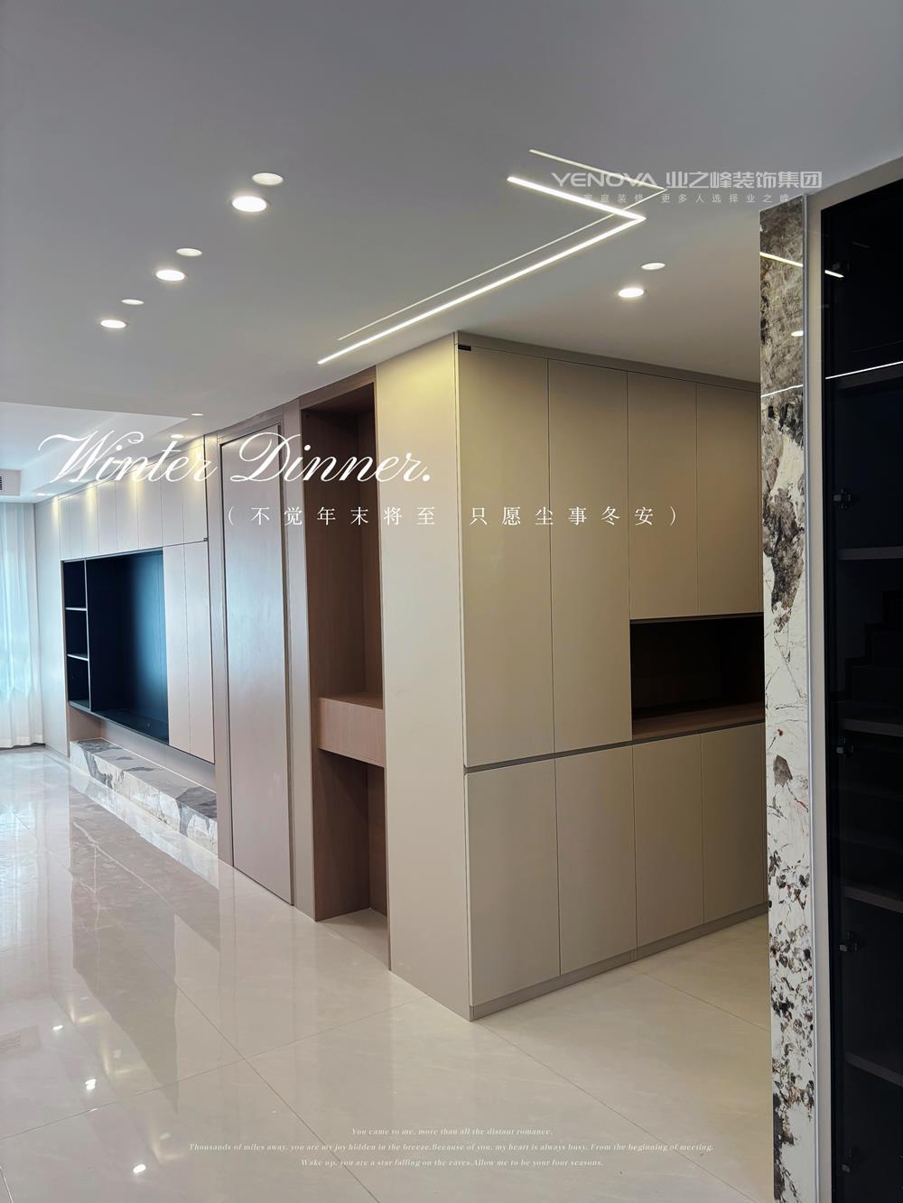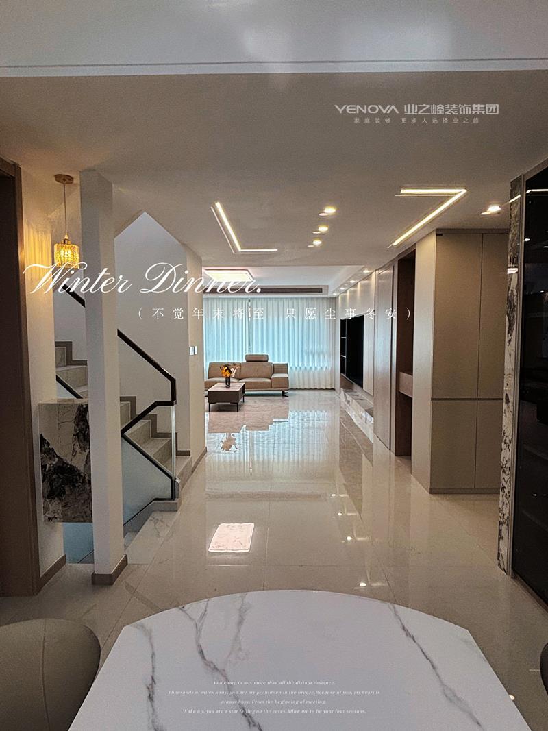现代轻奢风格的复式住宅,以暖调的咖色、米色为主色调,搭配大理石纹理与金属线条,勾勒出空间的精致质感。挑空的格局让动线更通透,线性灯与筒灯的组合打造出层次丰富的光影效果;定制的收纳柜体与简约的家具搭配,兼顾了实用性与美学感,楼梯旁的水晶吊灯、客厅的皮质沙发等细节,又为空间添上了恰到好处的奢华感,整体营造出温馨又高级的居住氛围。