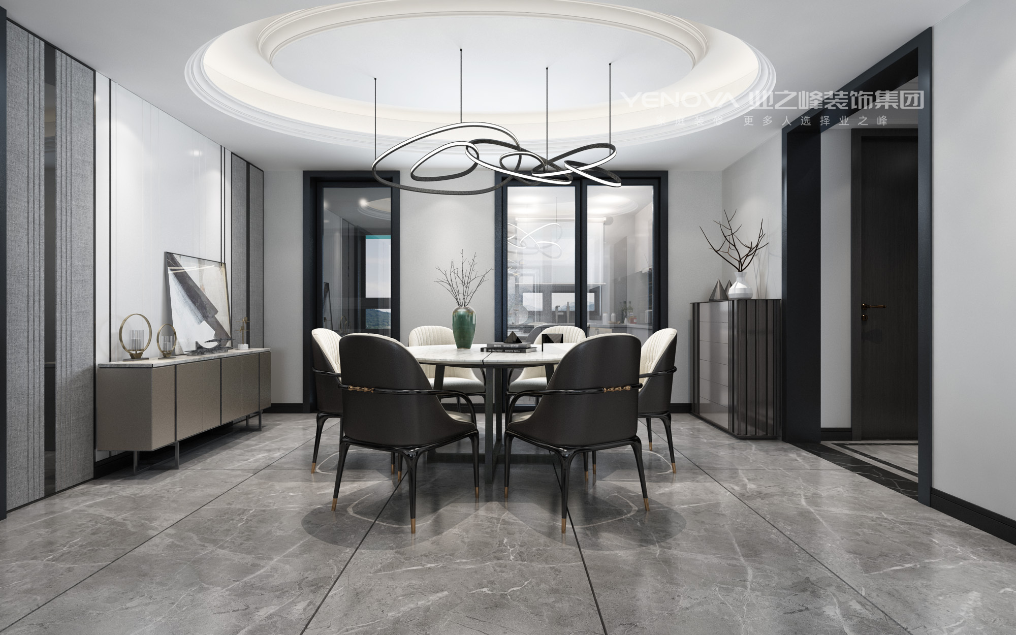 空间利用率最大化:开放式布局与定制家具(如餐边柜)的结合,既满足储物需求,又不占用过多空间,适合中小户型餐厅参考。