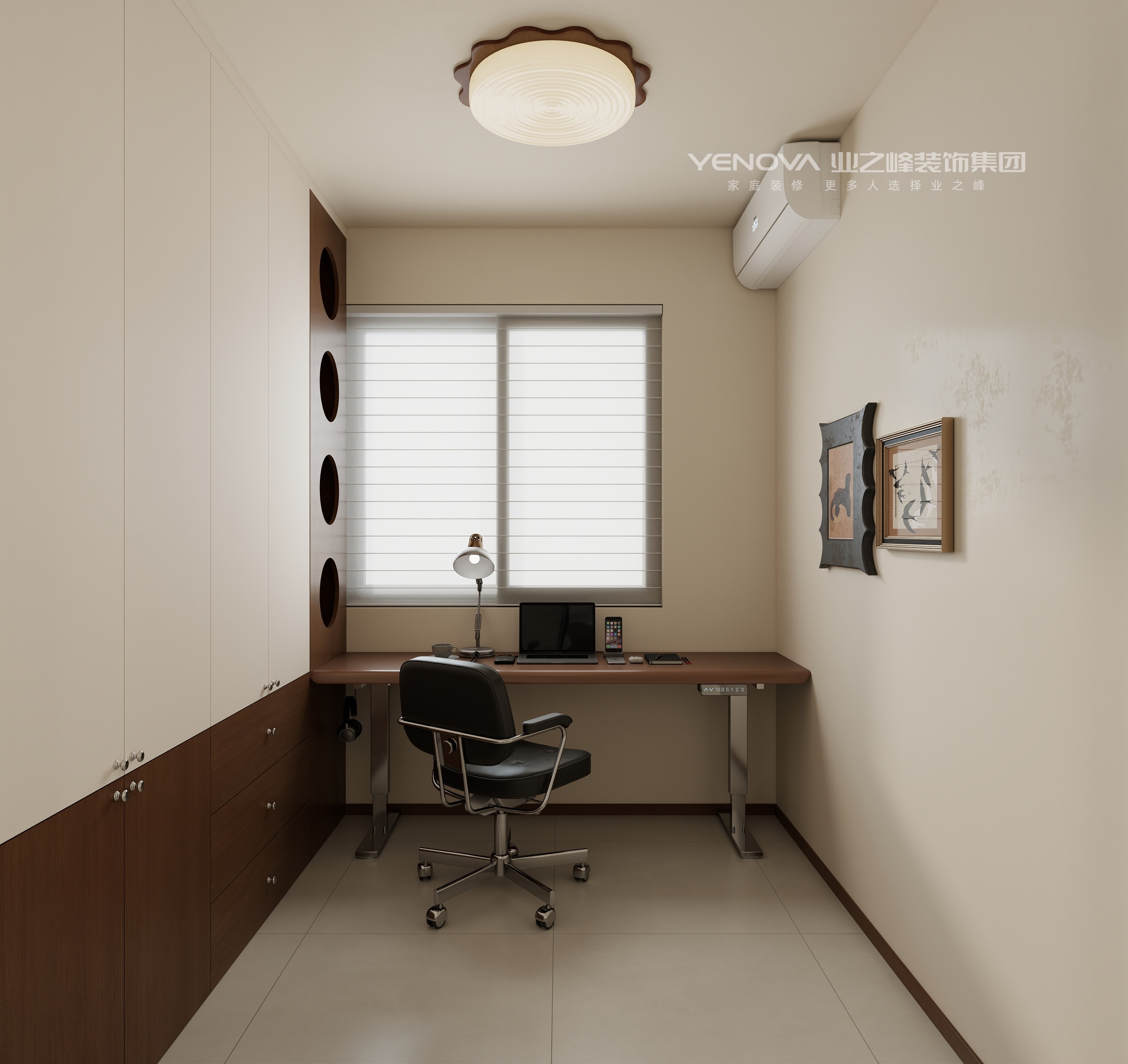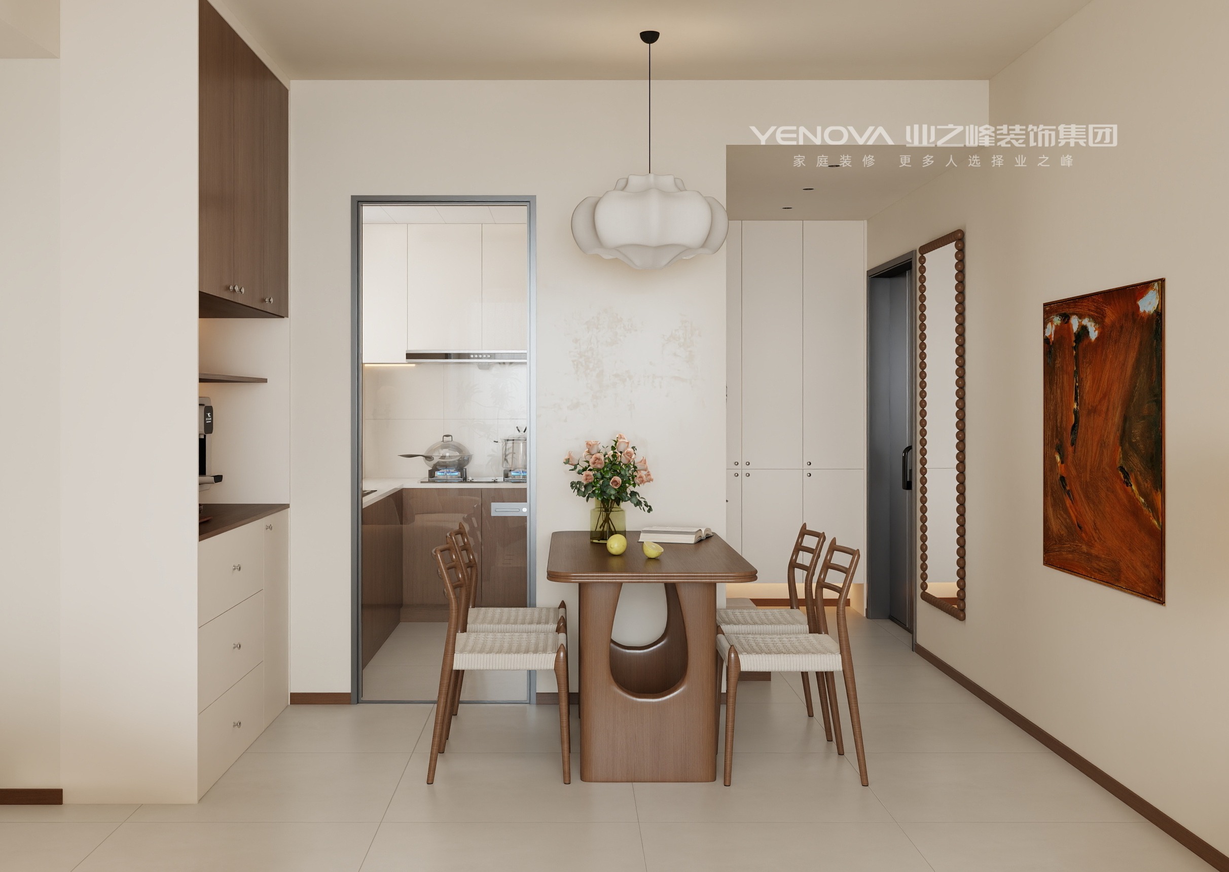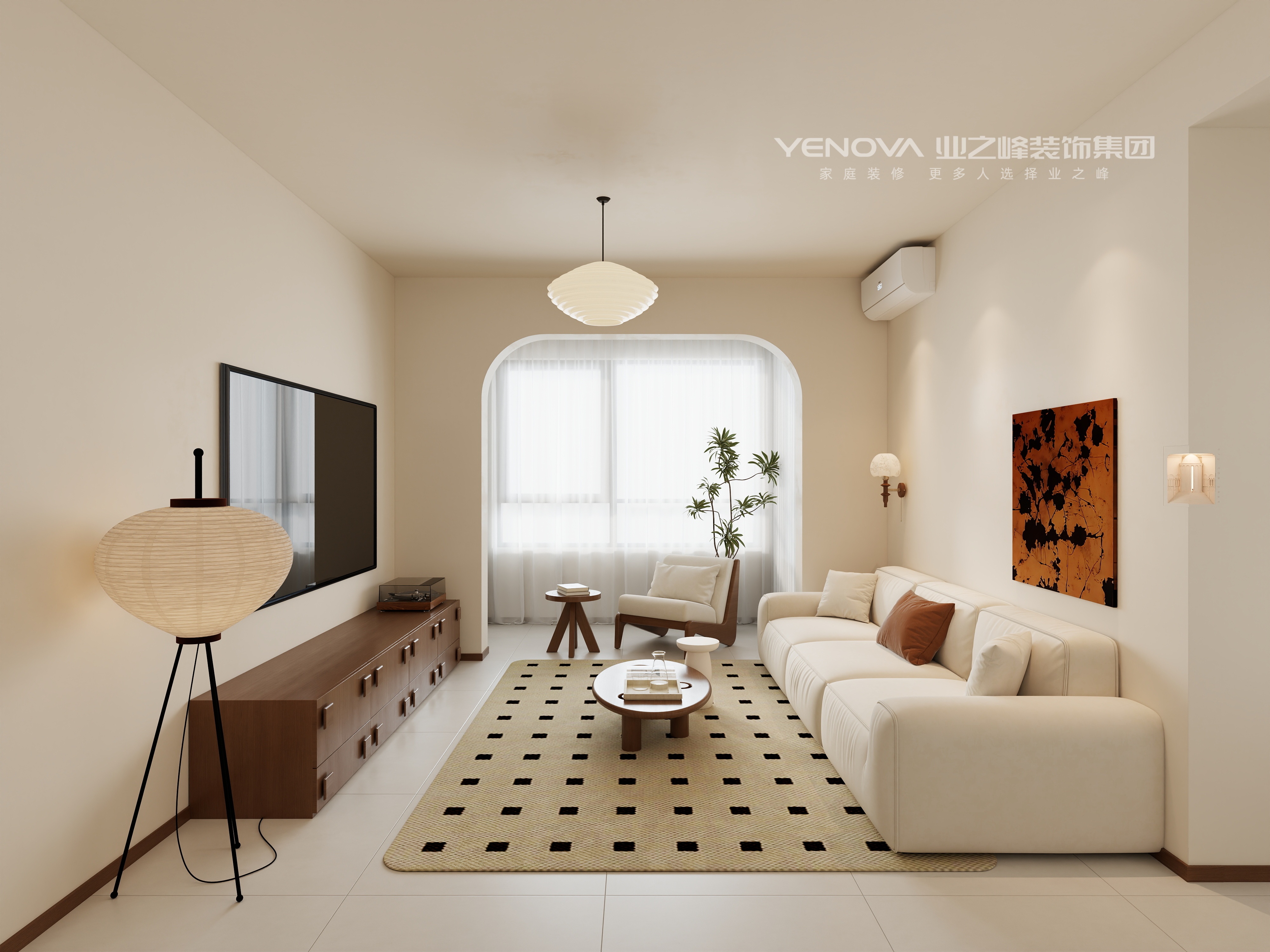 本案例以奶油中古风格为核心,将奶油风的柔和温润与中古风格的复古质感相融,打造出兼具舒适与怀旧的居住空间。以奶油白、米杏色为基底,搭配深胡桃木的沉稳棕调,局部用焦糖色、墨黑做点缀,冷暖平衡中营造慵懒复古的氛围。