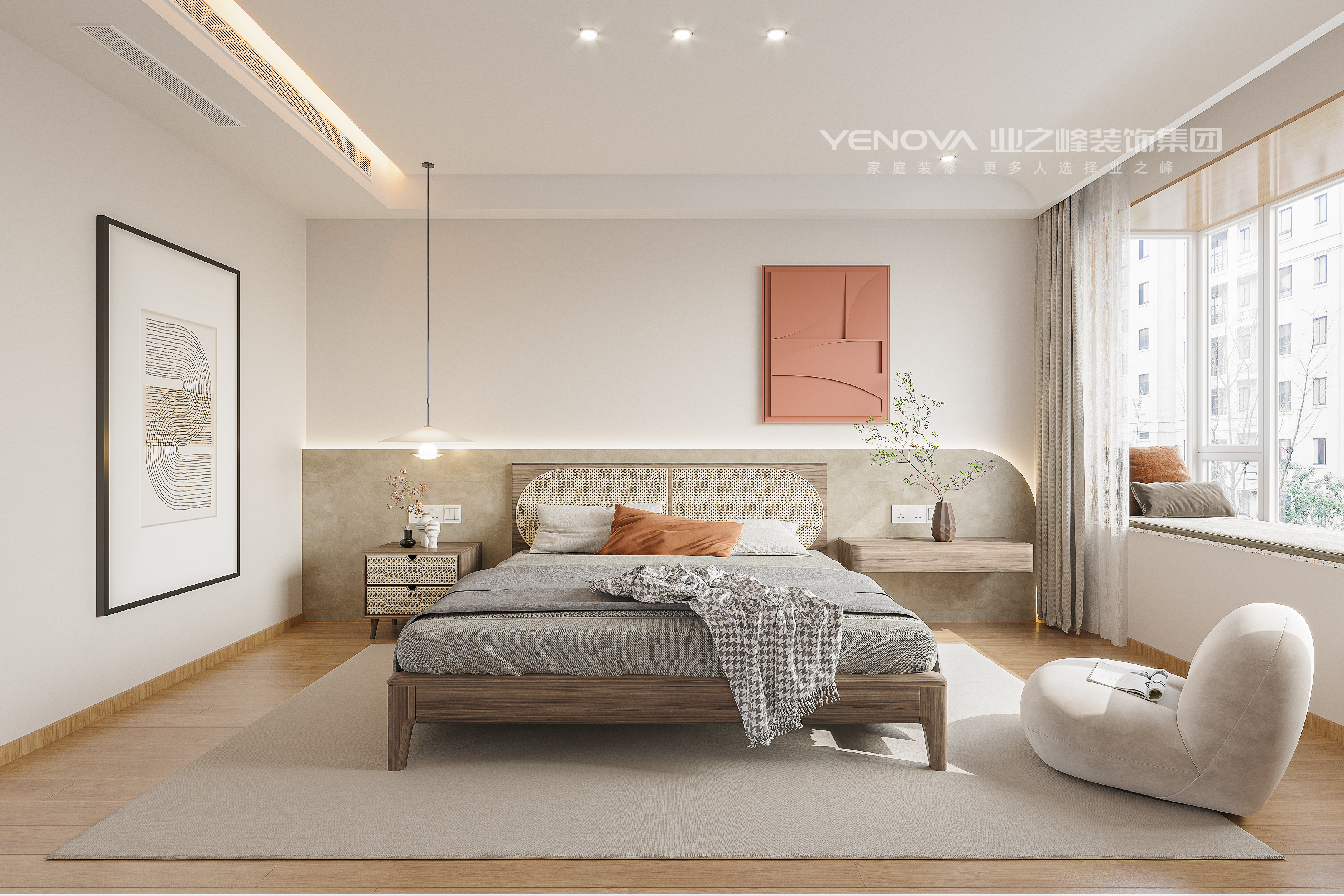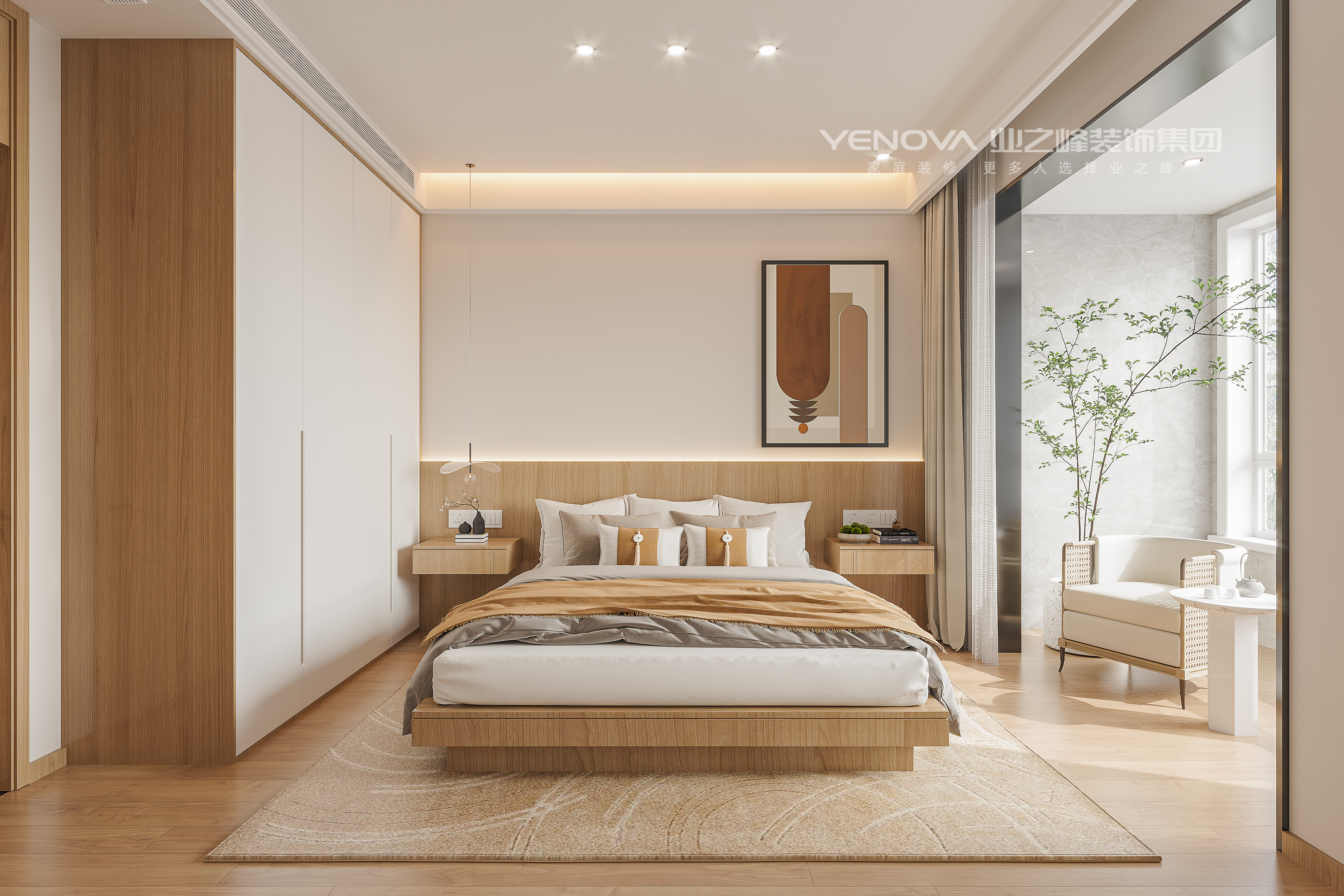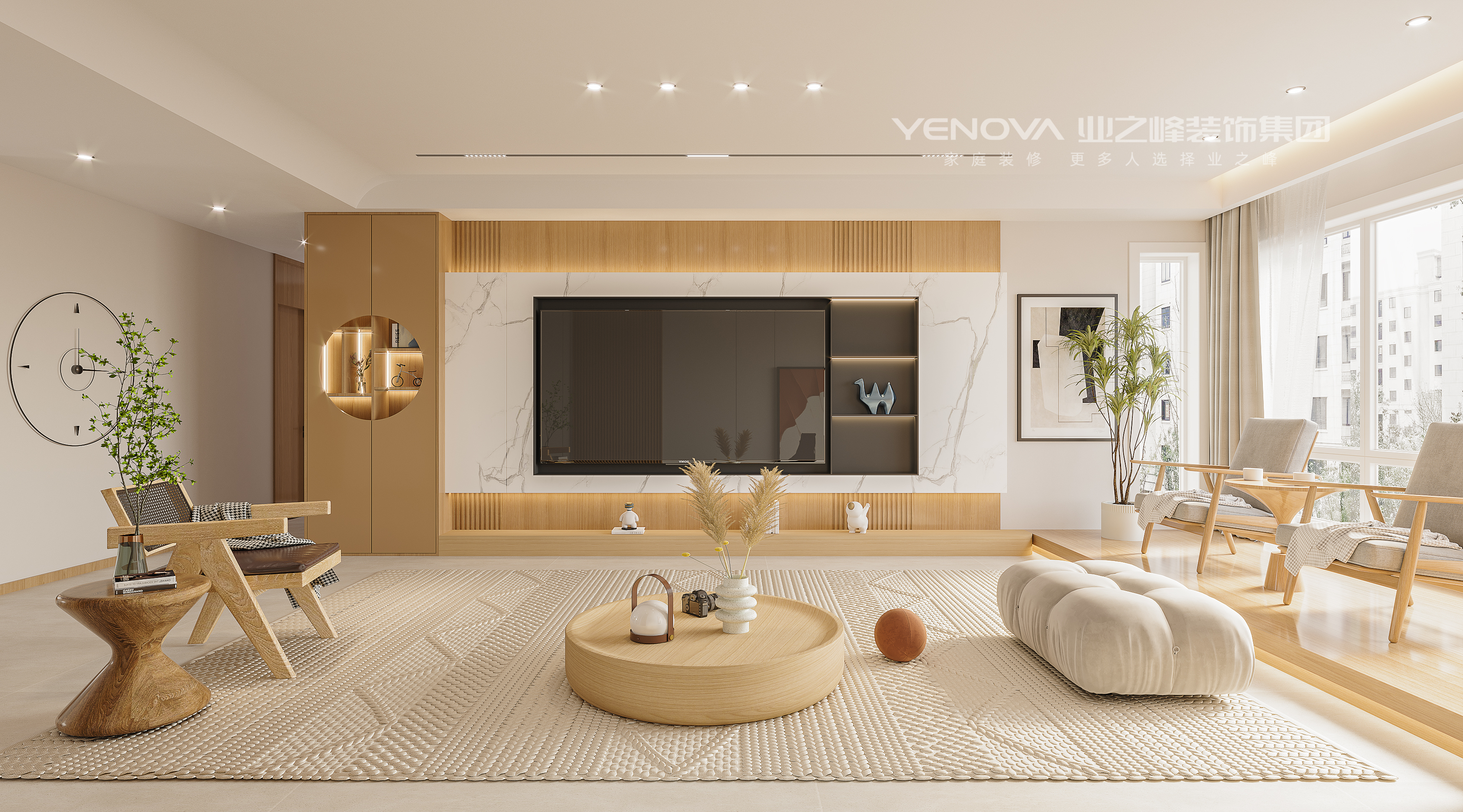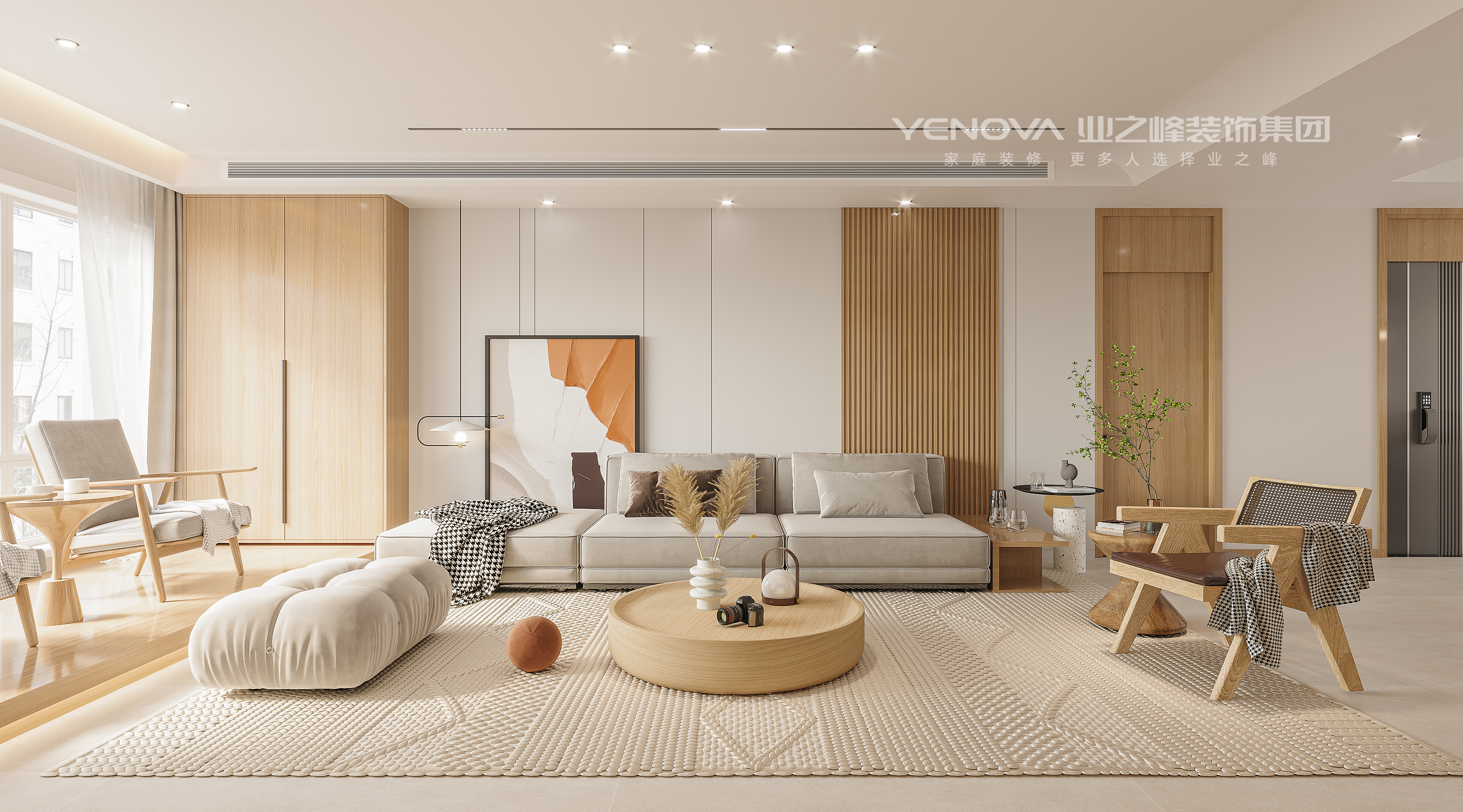 这套空间是轻侘寂风与原木极简结合的全屋设计,以 “柔和松弛,自然栖居” 为核心,用低饱和色调与温润材质,营造治愈感的日常氛围。