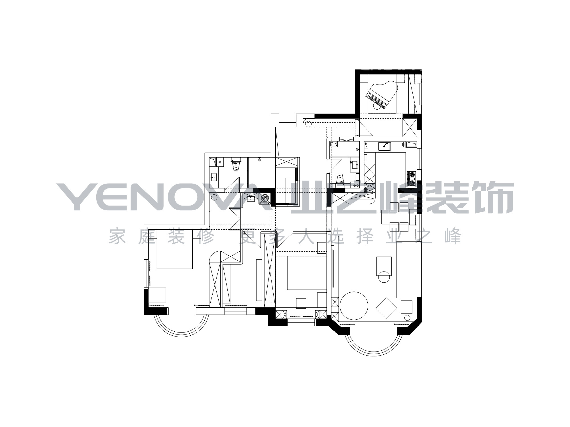 本案是和平的大面积老房改造,面积不小但是户型不合理,门厅超大不好利用,卫生间厨房稍显局促;