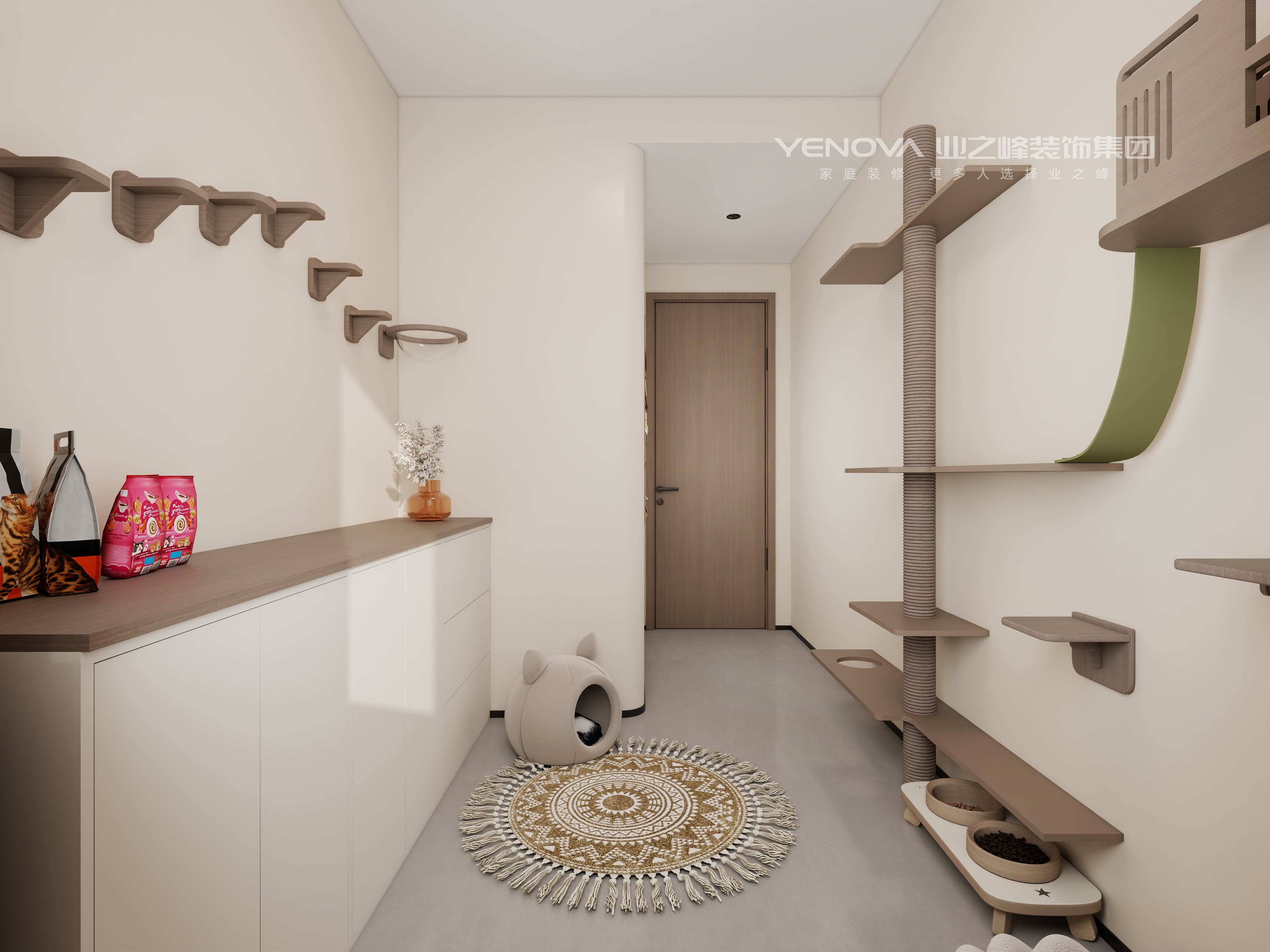 业主家里有好多猫,需要独立猫屋等,设计师对户型做了大刀阔斧的改造,动静分区,动线、储物等都做了很好的梳理。风格方面浅色的意式极简风,全屋摒弃繁杂的装饰,用干脆干练的线条勾勒出轮廓感,性价比高的同时做出大平层的感觉。
