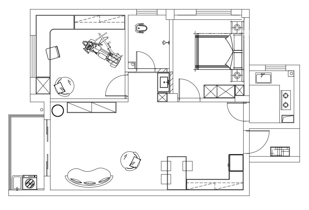 该案例是业主为独立生活在父母同小区装修的一套房子 所以这次改造基于自己的居住要求 业主一再强调以一人生活为主 然后要适合自己经常和朋友聚会开party的生活习惯 再就是自己在意的一个是家里的工作和健身空间 家里整体要简约干净好打理 对家中储物要求希望可以把空间利用率达到最高并且做好分类 我们沟通后把每个空间的功能最大化的利用,并且每个区域做好分类收纳储物 做好分区 在满足了基础功能要求情况后,也考虑了客户的生活习惯,我们把客厅去掉传统的一体式沙发和电视背景 选择更加适合自己的组合沙发可以根据需求 也取消了电视这一功能 即提高生活质量又要满足居住要求 。 业主对家里整体色调要求简约协调 所以我们整体以浅色为基调 来达到业主的要求 让自己居住在一个舒适的环境。在一个舒适