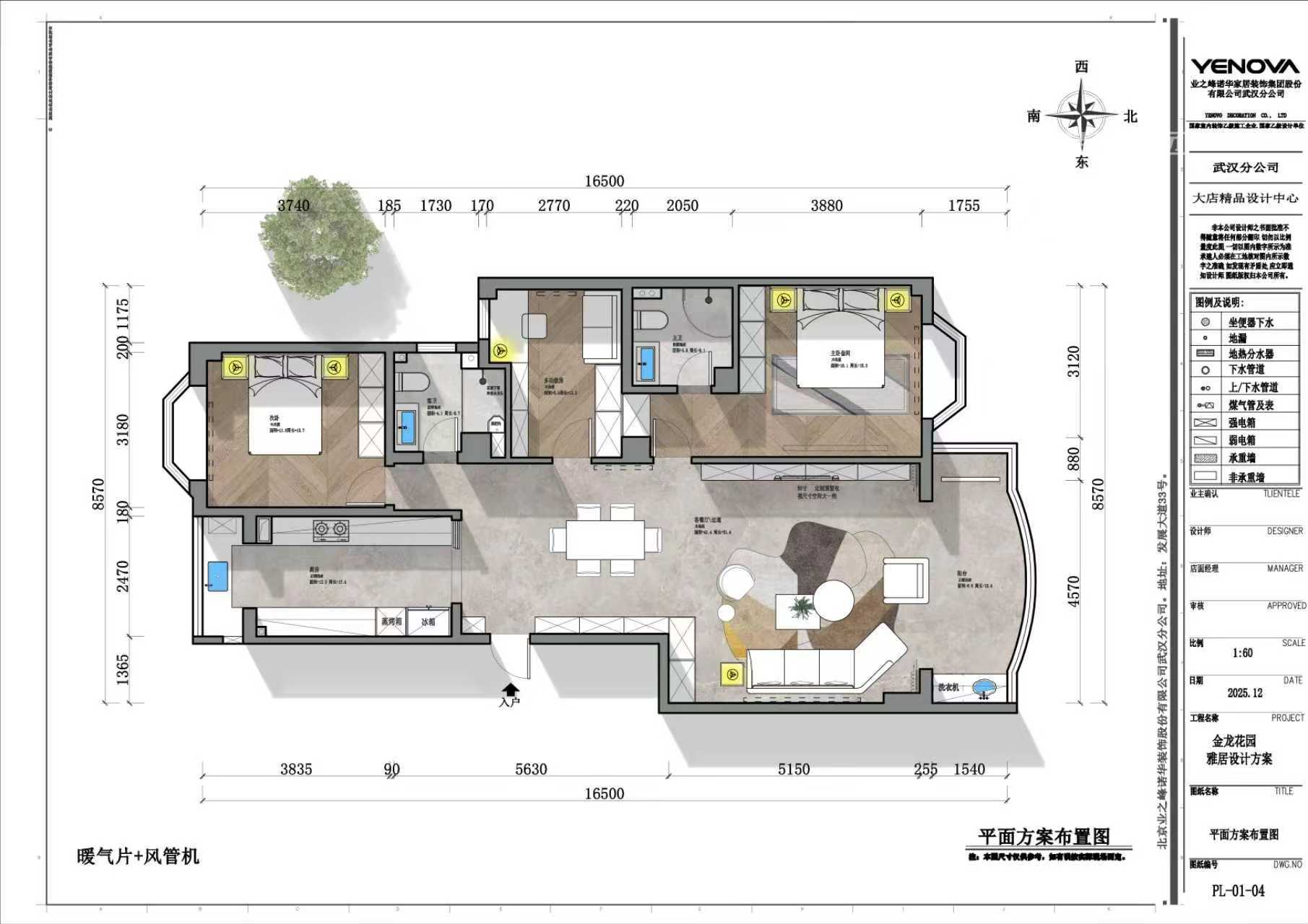 125㎡三居新中式风格金龙花园