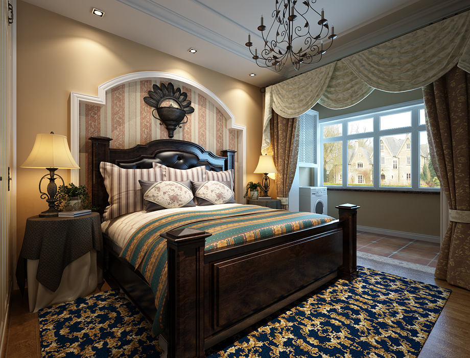 设计手法上从整体到局部、从空间到室内陈列塑造,都给人一种精美印象。一方面保存了材质、色彩的大致感受,淡蓝色和木色家具有助于凸起清贵和舒雅,格调一样的壁纸、地毯、家具、外罩等装饰织物安置的家居摒弃了古典风格过于复杂的肌理和装饰,接收现代风格的长处,简化了线条,凸显简练美,出力塑造尊贵又不掉高雅的居家情调。