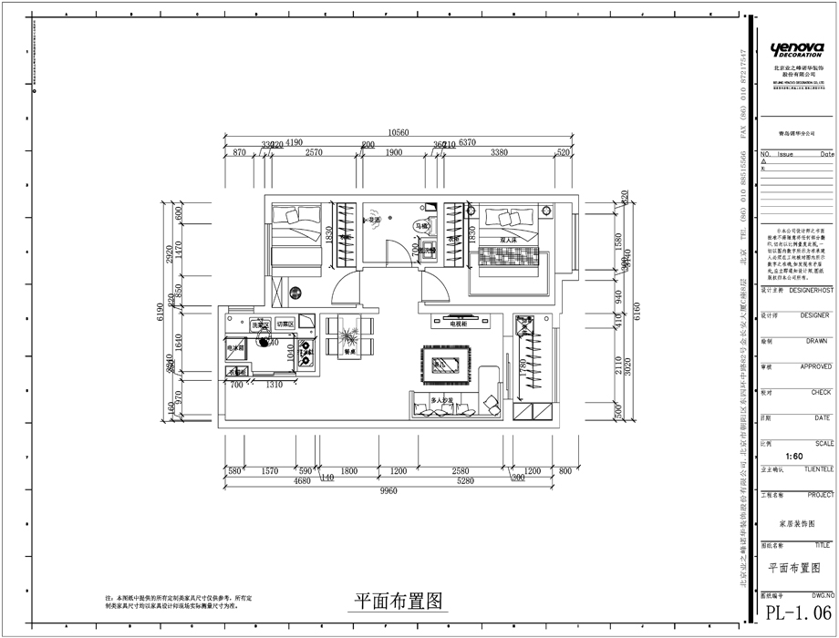 此设计方案的业主是一对夫妇和两岁半的儿子;风格倾向定位为现代风格,居室中所出现的电器皆为紧跟时代潮流的产品,如等离子电视、环绕立体音响等。本案的设计重点是会客空间与门厅、餐厅以及过道空间互通与交流,从设计手法上采用了从墙面上的线与面的衔接呼应,以及顶面的空间的虚拟划分,达到各功能空间融会贯通的目的。简洁、现代的极少主义在本案中得到了淋漓尽致的体现
