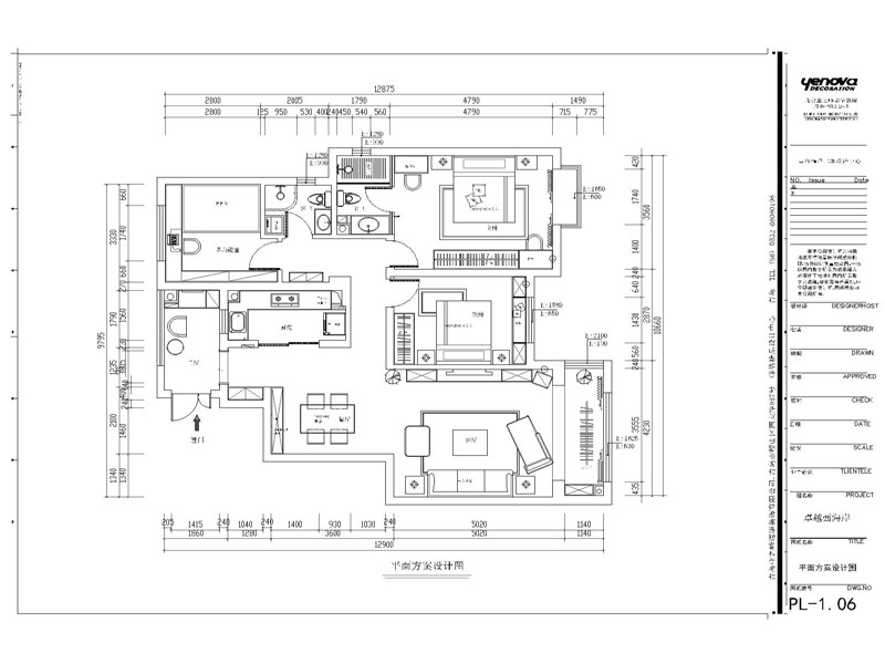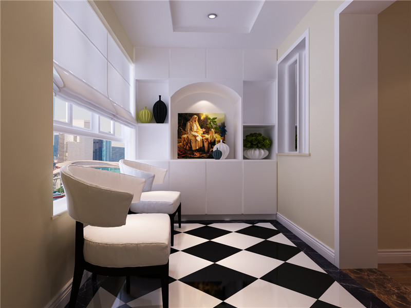 本案以黒、灰、米黄、白四色作基调,门厅,进门地面黑白 斜拼增加视觉冲击力。