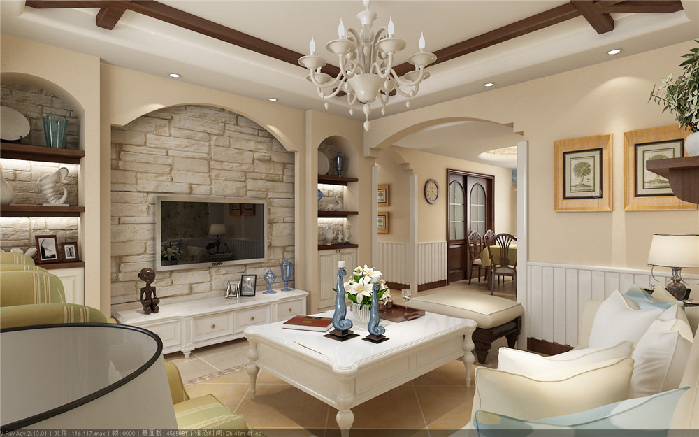 设计说明:本案定义为田园风格,在室内环境中力求表现悠闲、舒畅、自然的田园生活情趣,也常运用天然木、石、藤、竹等材质质朴的纹理。巧于设置室内绿化,创造自然、简朴、高雅的氛围。在材料选择上多倾向于较硬、光挺、华丽的材质。回归自然,不精雕细刻。繁杂喧闹并且污染越来越严重的城市环境和快速的生活节奏,繁忙的工作压力让都市人重新开始对乡村生活方式感到好奇或向往。对于曾经忽视的乡间存留的独特民间艺术形式也感兴趣。“开轩面场圃,把酒话桑麻。”“采菊东篱下,悠然见南山”的生活方式得到了人们的再次捡拾和重新诠释。