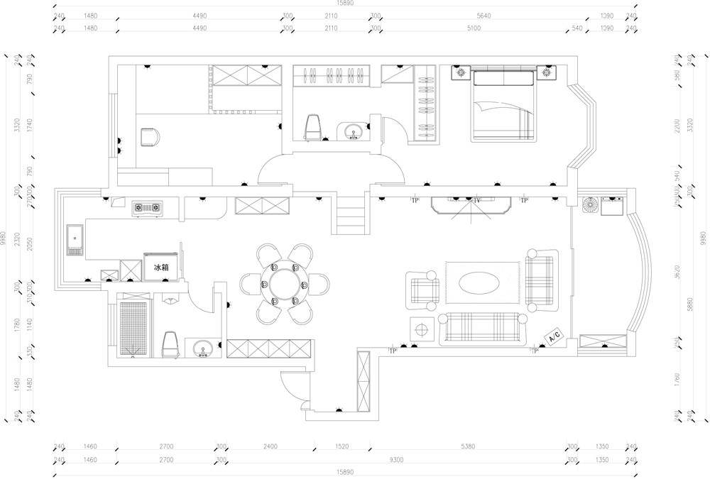 小区:金帝山庄 面积:126㎡ 户型:二居 风格:新古典风格