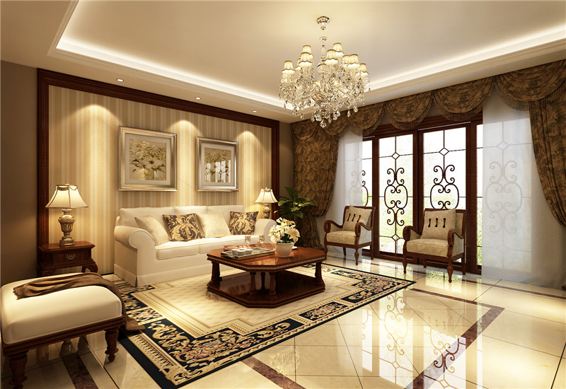 本案美式风格的设计是经过改良的欧式风格。西方文化丰富的艺术底蕴,开放、创新的设计思想及其尊贵的姿容,一直以来颇受众人喜爱与追求。美式风格从简单到繁杂、从整体到局部,精雕细琢,镶花刻金都给人一丝不苟的印象。一方面保留了材质、色彩的大致风格,仍然可以很强烈地感受传统的历史痕迹与浑厚的文化底蕴,同时又摒弃了过于复杂的肌理和装饰,简化了线条。 。